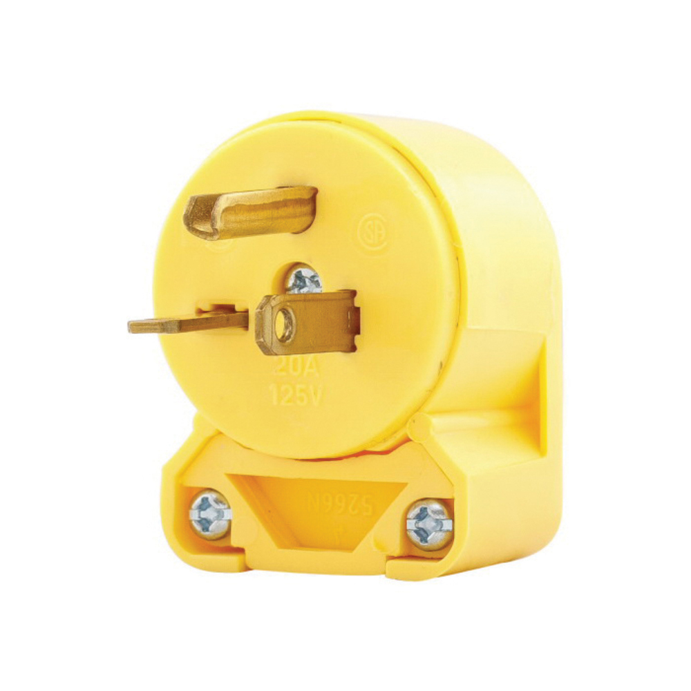 EATON Arrow Hart™ Eaton Wiring Devices 4409AN-BOX Angled Straight Blade Plug, 125 VAC, 20 A, 2 Poles, 3 Wires, Yellow