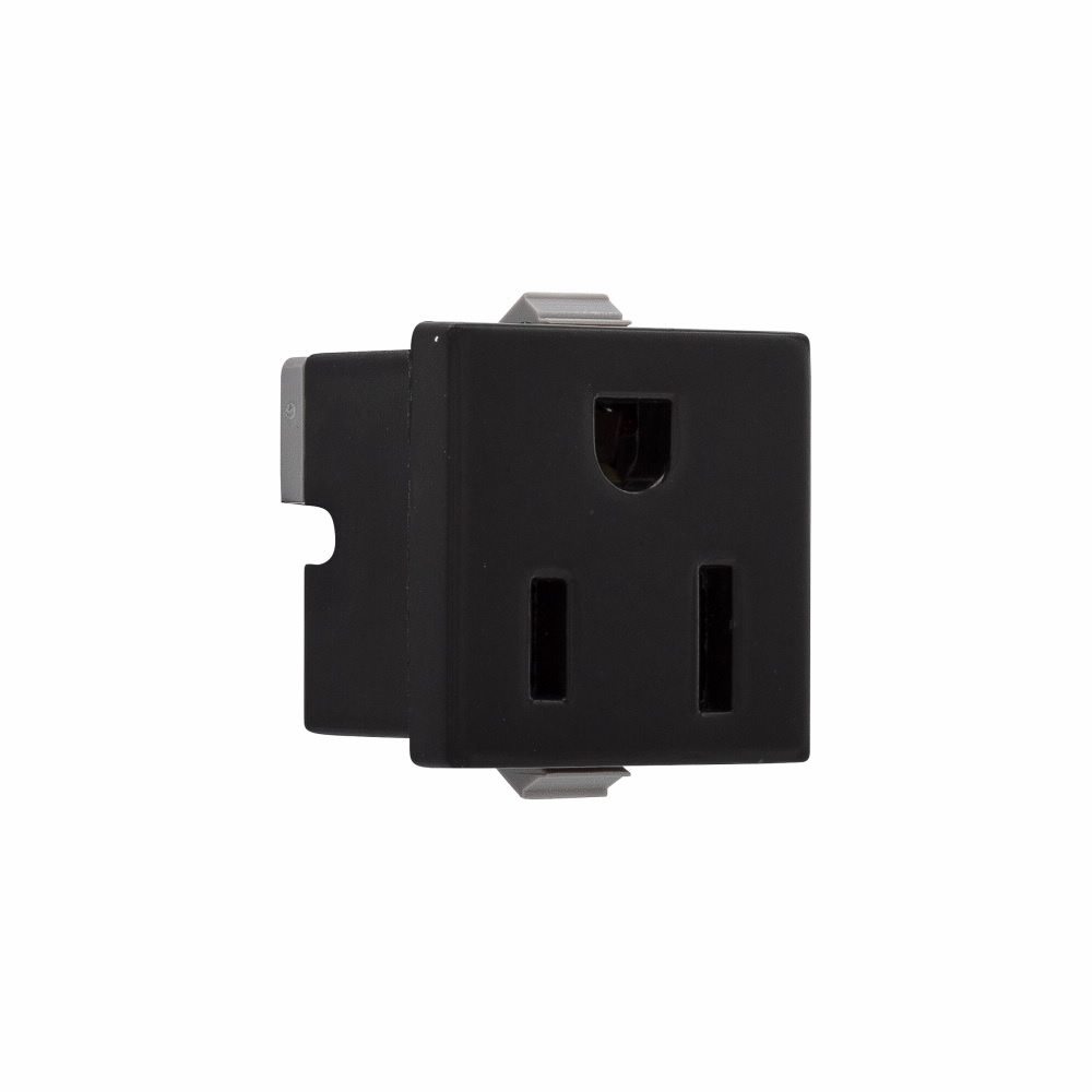 EATON Arrow Hart® 49-2BK-BU Grounding Snap-In Single Square Straight Blade Receptacle, 125 VAC, 15 A, 2 Poles, 3 Wires, Black