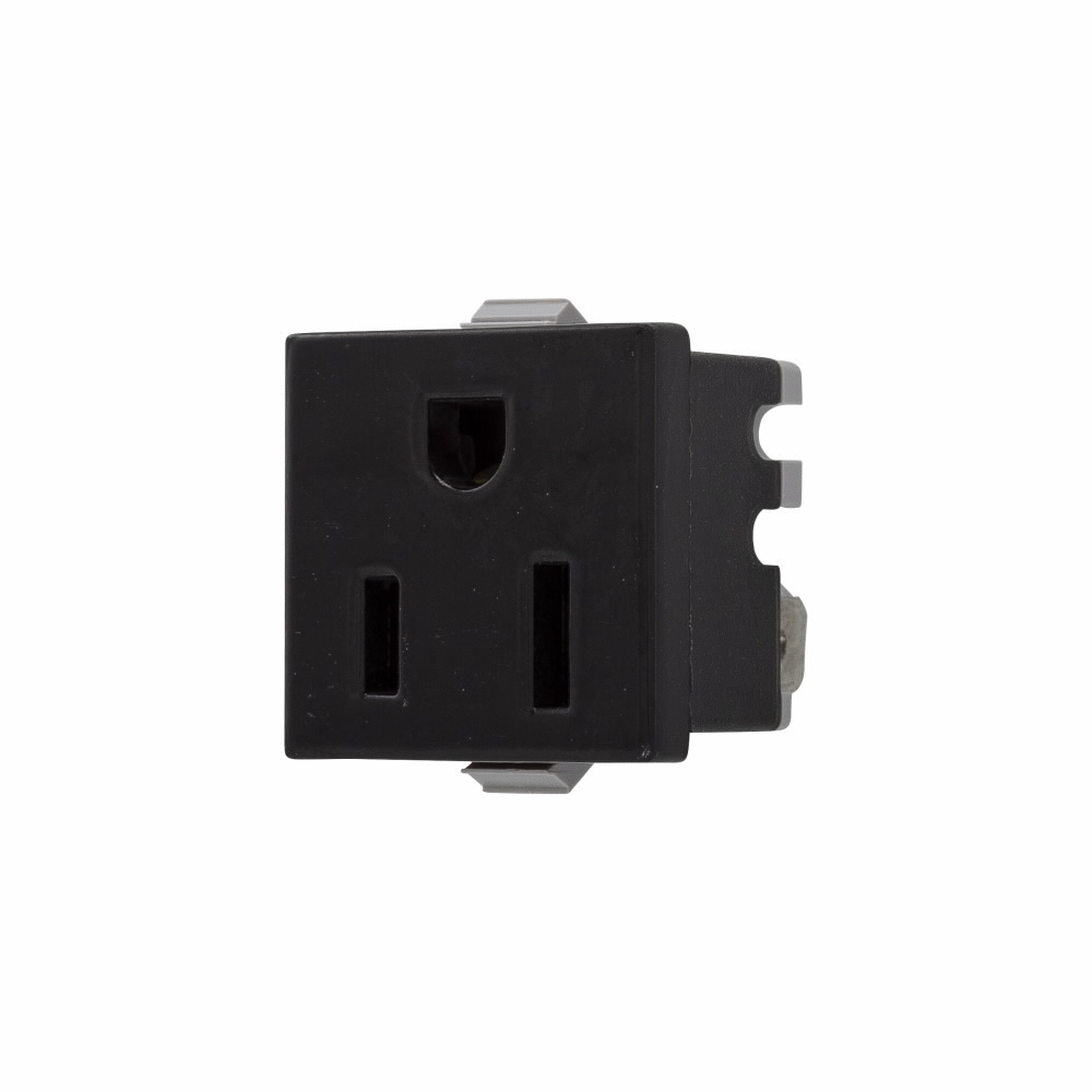 EATON 49W-BU Snap-In Single Square Straight Blade Receptacle With Plastic Back and Clips, Screw Terminal Grounding, 125 VAC, 15 A, 2 Poles, 3 Wires, White