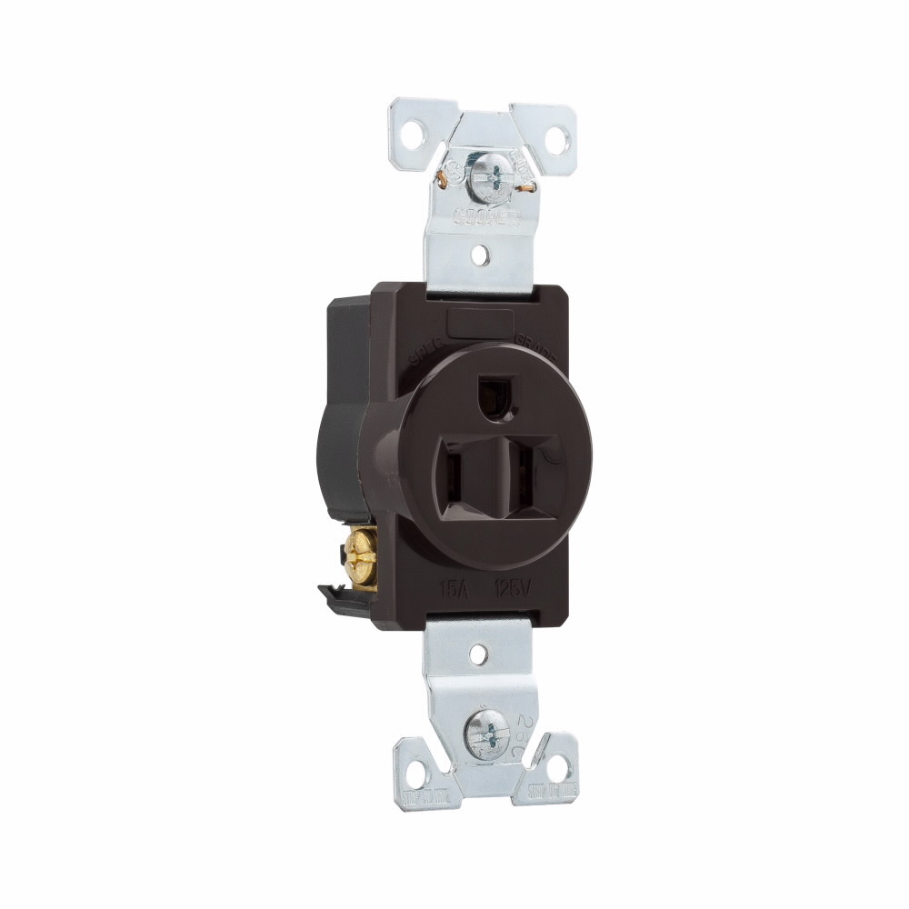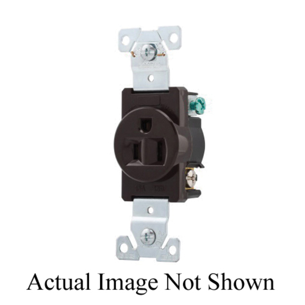 EATON Arrow Hart™ Eaton Wiring Devices 5261B Premium Single Straight Blade Receptacle, 125 VAC, 15 A, 2 Poles, 3 Wires, Brown