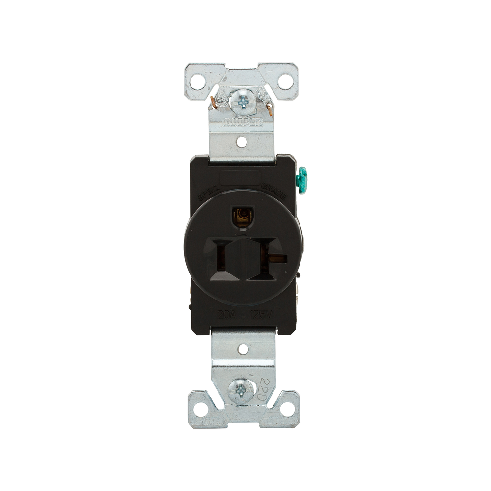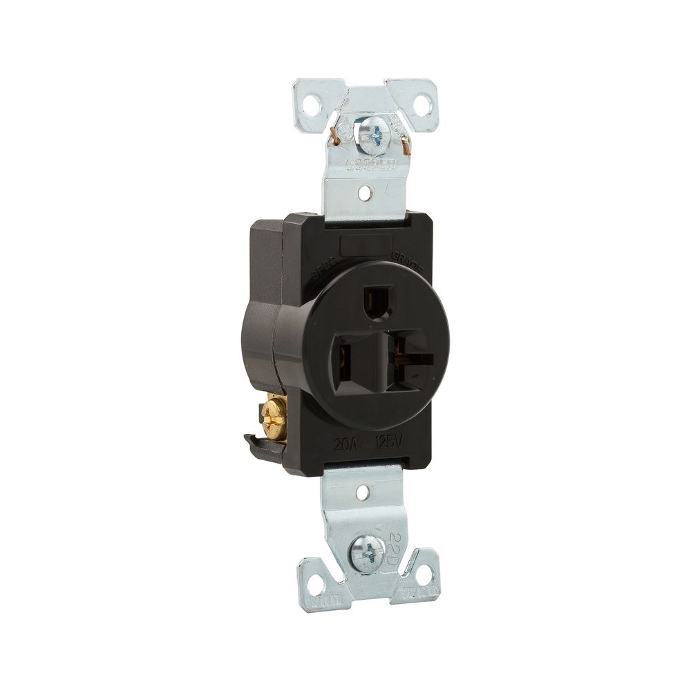 EATON Arrow Hart® 5361BK Receptacles Straight Blade Receptacle, 125 V, 20 A, 2 Poles, 3 Wires, Black