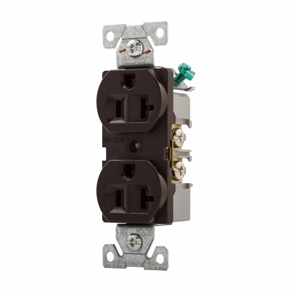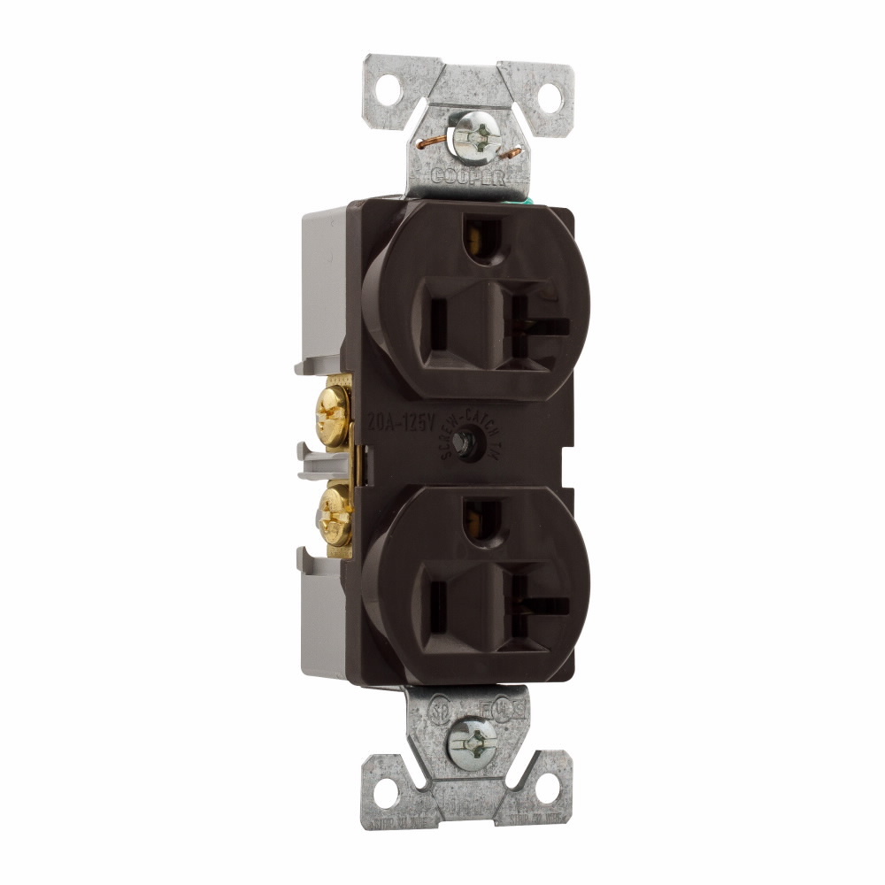 EATON Arrow Hart™ Eaton Wiring Devices 5362B Duplex Straight Blade Receptacle, 125 VAC, 20 A, 2 Poles, 3 Wires, Brown