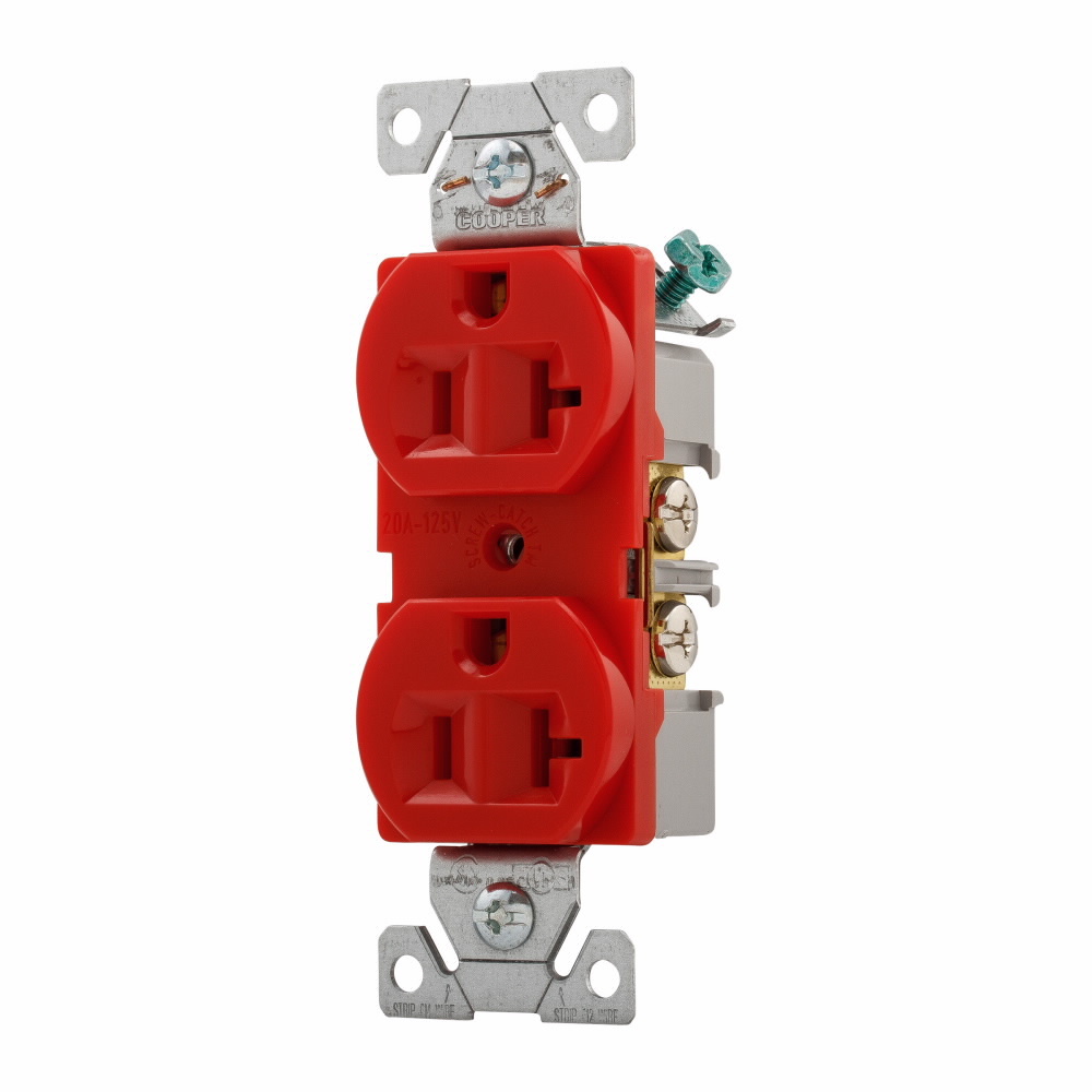 EATON Arrow Hart® 5362RD 5362 Duplex Grounding Straight Blade Receptacle, 125 VAC, 20 A, 2 Poles, 3 Wires, Red