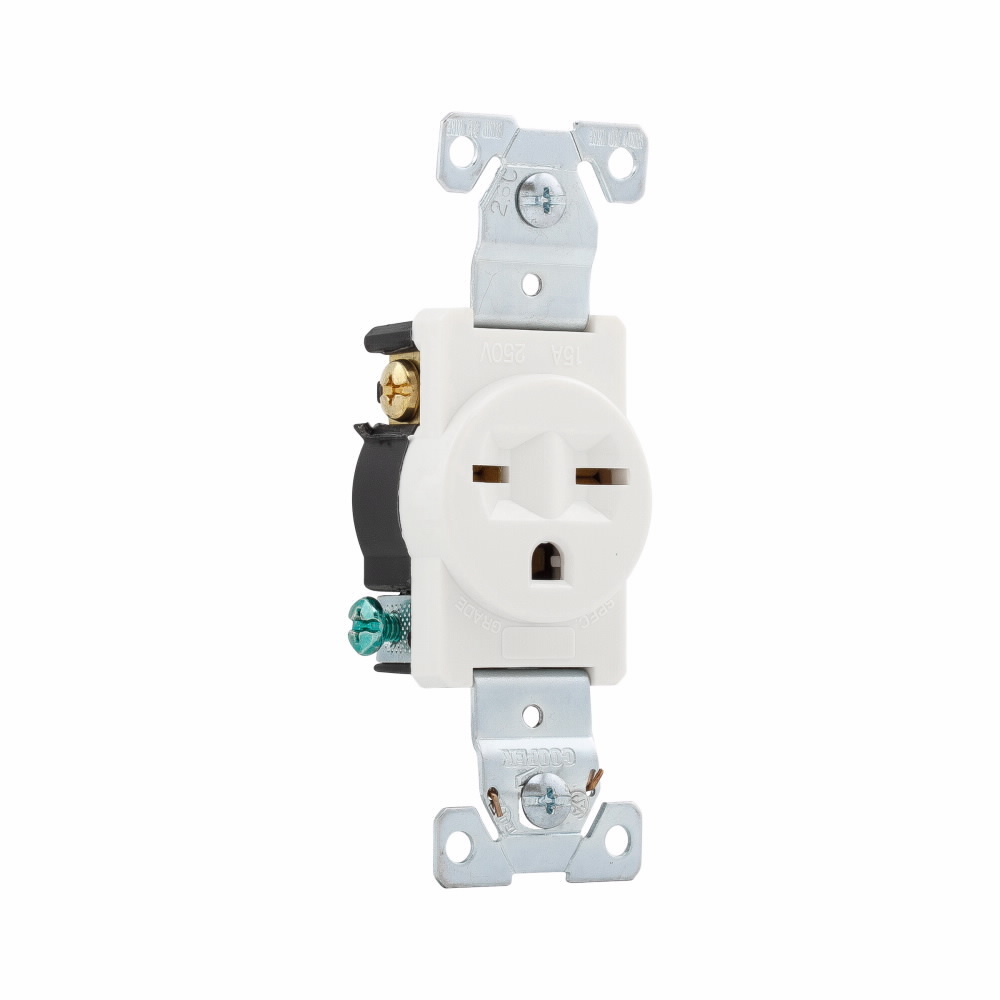 EATON Arrow Hart™ Eaton Wiring Devices 5661W Premium Single Straight Blade Receptacle, 250 VAC, 15 A, 2 Poles, 3 Wires, White