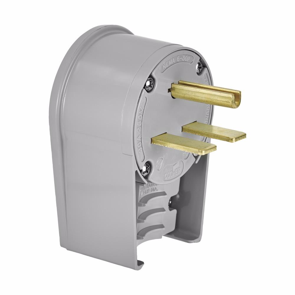 EATON Arrow Hart™ Eaton Wiring Devices 5701AN Angled Straight Blade Plug, 250 VAC, 30 A, 2 Poles, 3 Wires, Gray