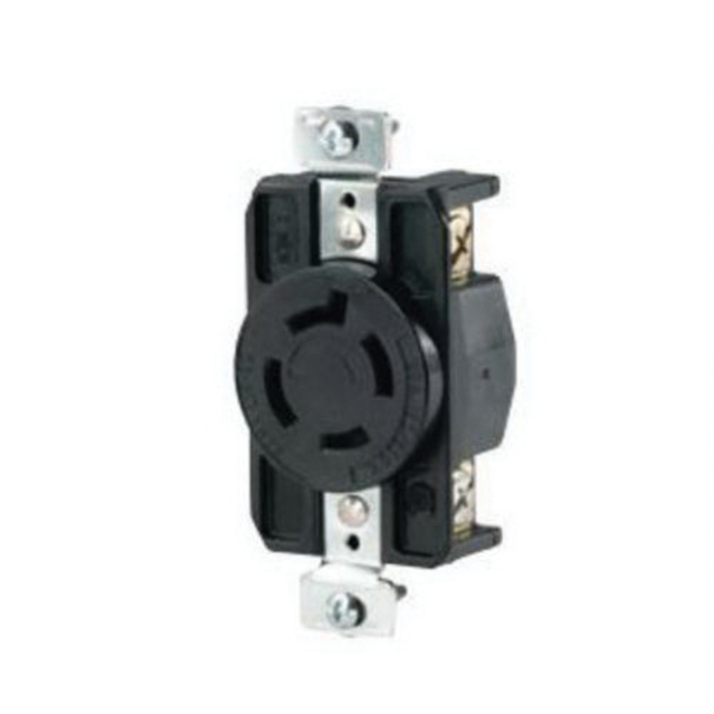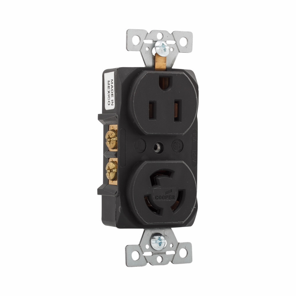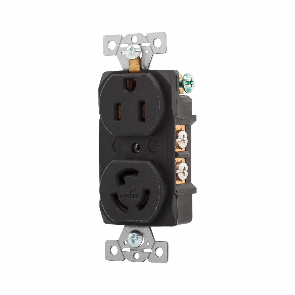 EATON Arrow Hart™ Eaton Wiring Devices 5792 Locking Straight Blade Combination Duplex Receptacle, 125 VAC, 15 A, 2 Poles, 3 Wires, Black