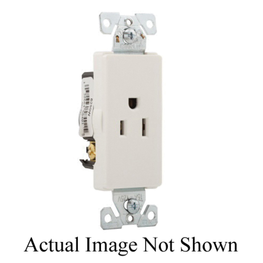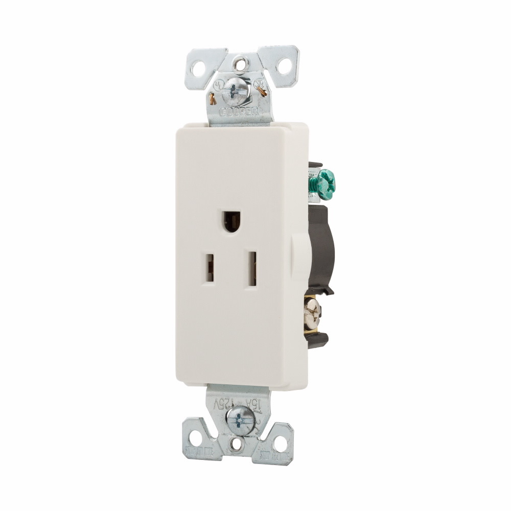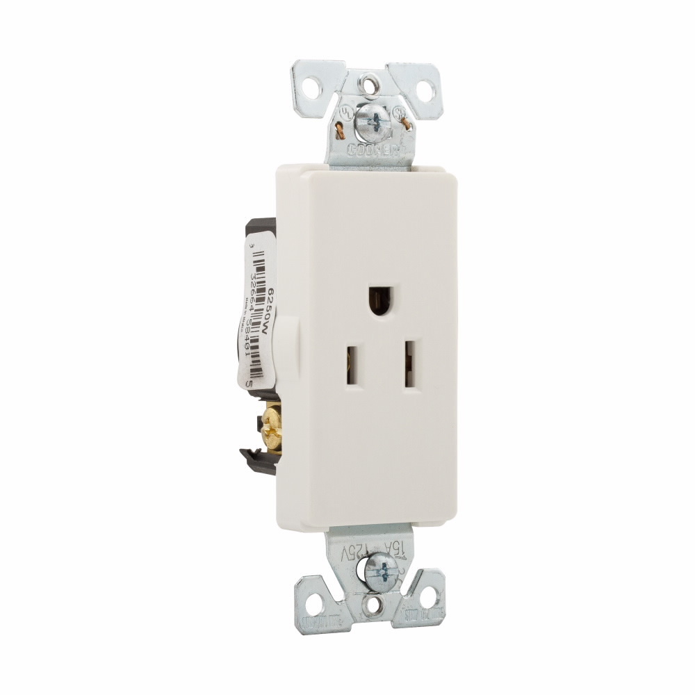 EATON Arrow Hart™ Eaton Wiring Devices 6250W-BU 6250 Decorator Single Straight Blade Receptacle, 125 VAC, 15 A, 2 Poles, 3 Wires, White