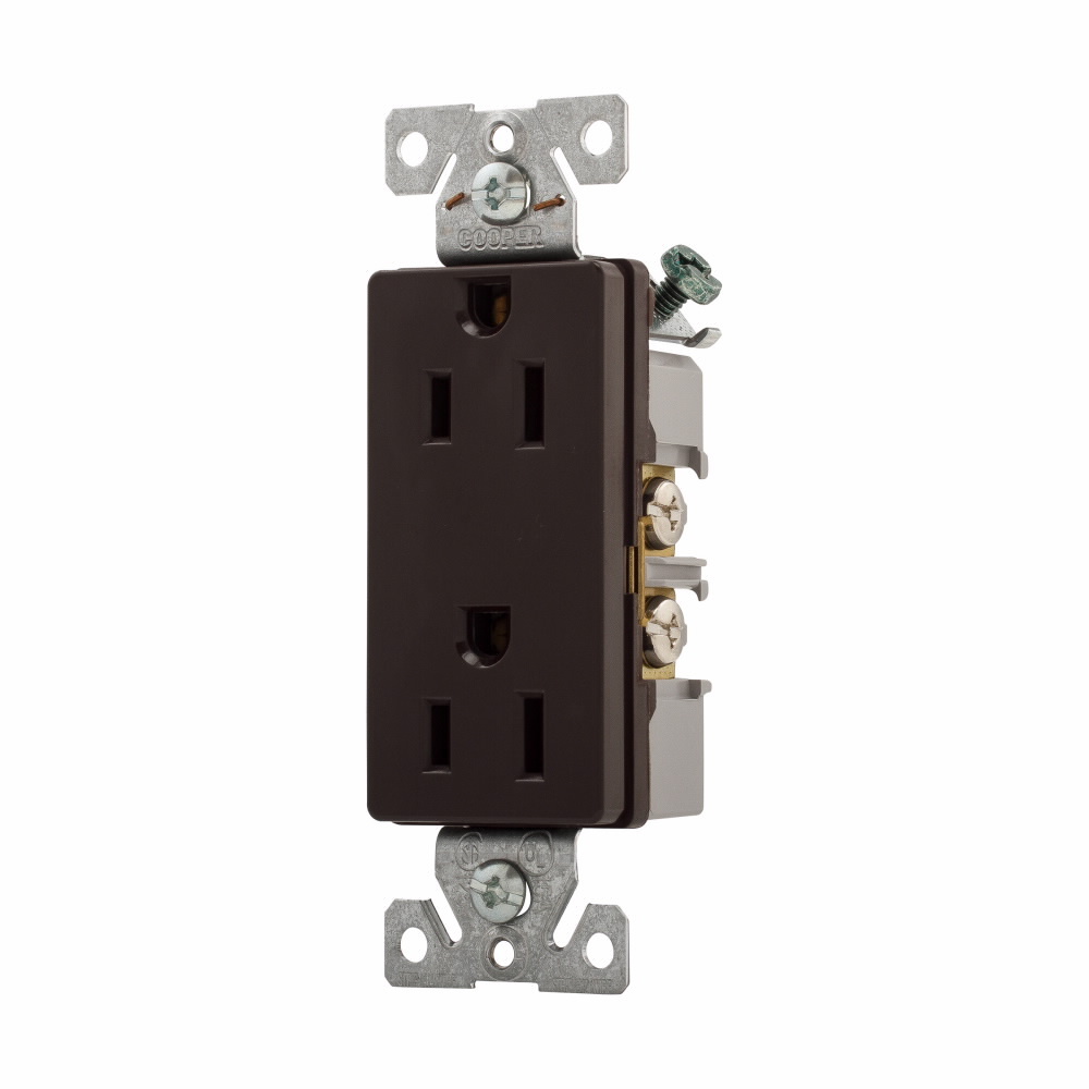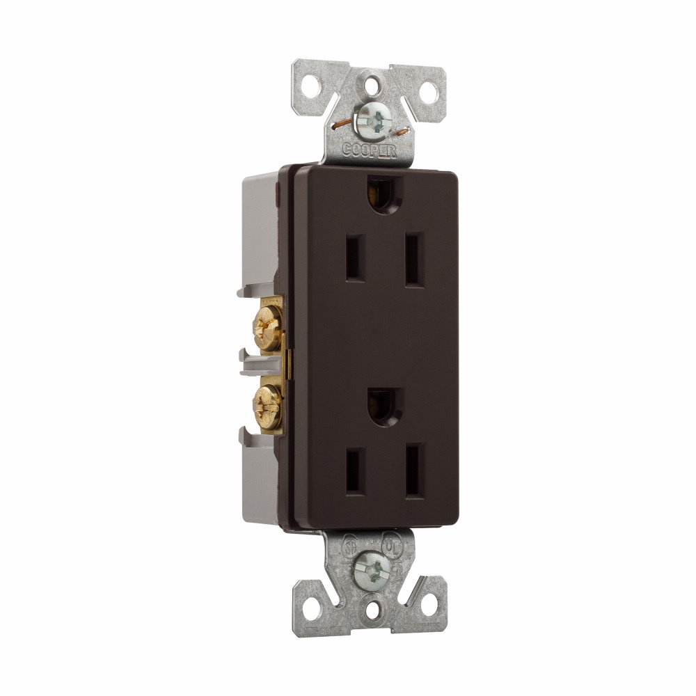 EATON Arrow Hart™ Eaton Wiring Devices 6252B-BU 6252 Decorator Duplex Straight Blade Receptacle, 125 VAC, 15 A, 2 Poles, 3 Wires, Brown