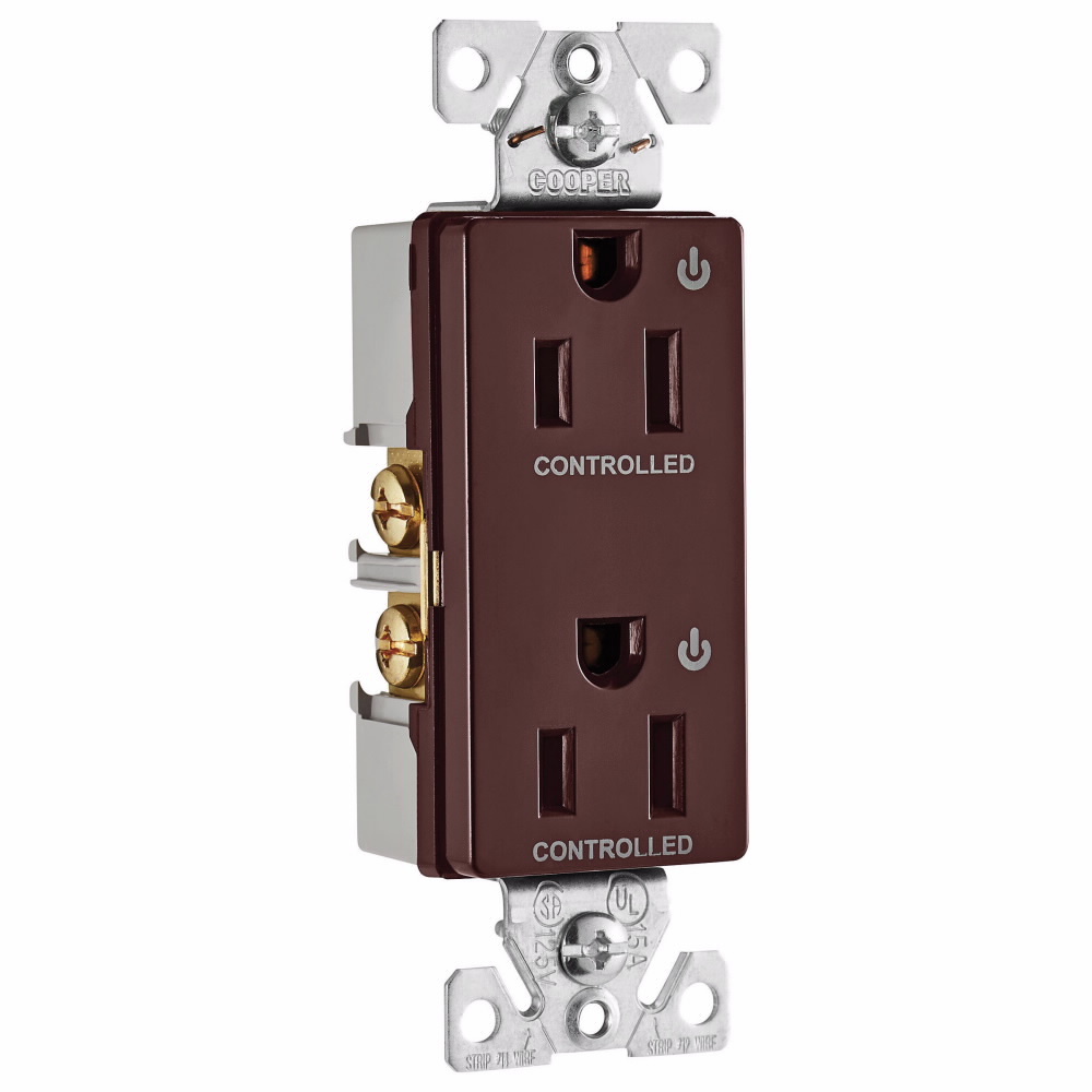 EATON Arrow Hart® 6252CDB 6252 Decorator Duplex Dual Controlled Grounding Straight Blade Receptacle, 125 VAC, 15 A, 2 Poles, 3 Wires, Brown