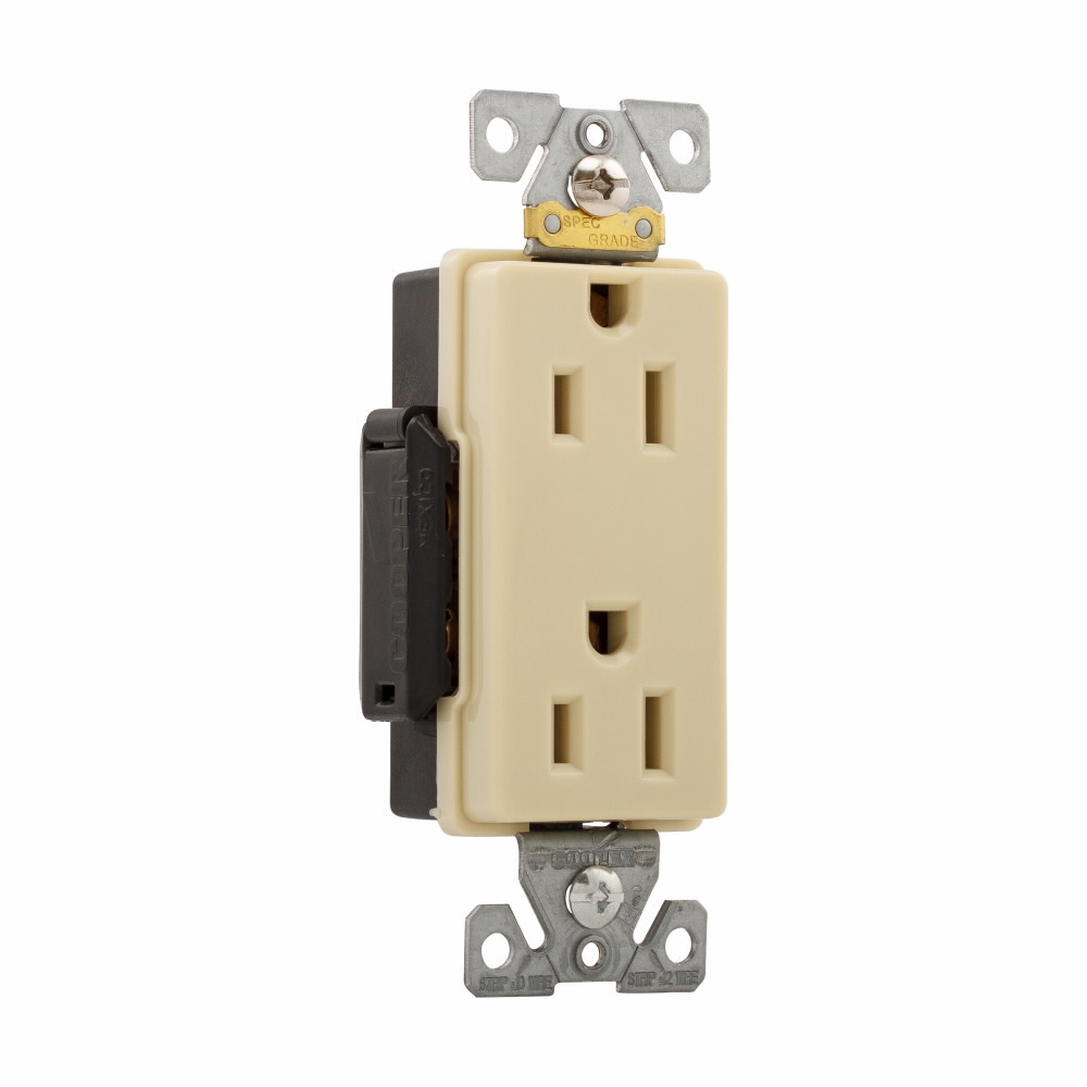 EATON Arrow Hart™ Eaton Wiring Devices 6262V 6262 Decorator Duplex Premium Straight Blade Receptacle, 125 VAC, 15 A, 2 Poles, 3 Wires, Ivory