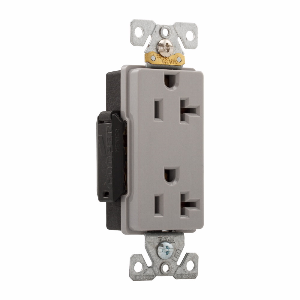 EATON Arrow Hart™ Eaton Wiring Devices 6362GY 6362 Decorator Duplex Premium Straight Blade Receptacle, 125 VAC, 20 A, 2 Poles, 3 Wires, Gray