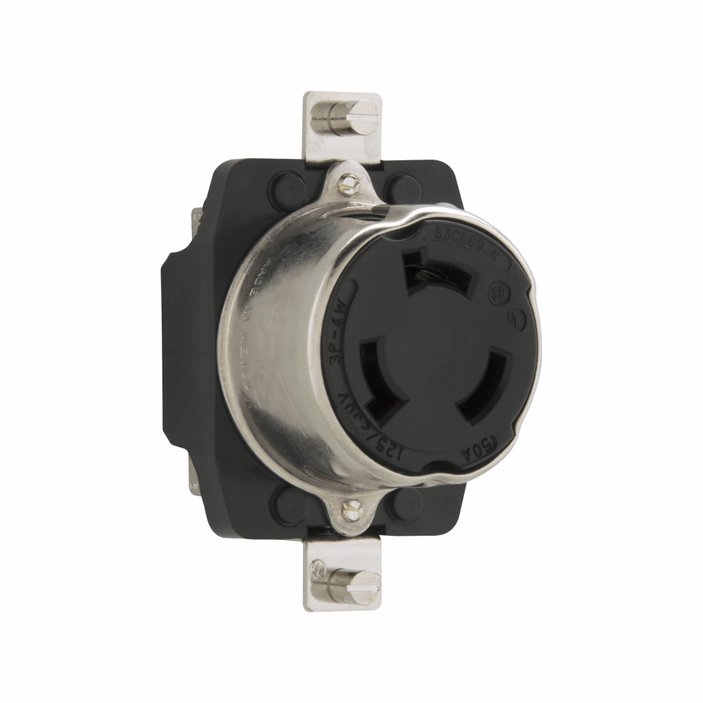 EATON Hart-Lock® 63CR69 Single Locking Plug, 125/250 V, 50 A, 3 Poles, 4 Wires, Black