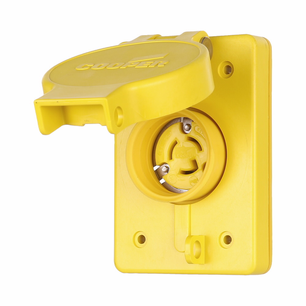 EATON Arrow Hart® Hart-Lock® 65W47BK Single Watertight Locking Receptacle, 125 VAC, 15 A, 2 Poles, 3 Wires, Black