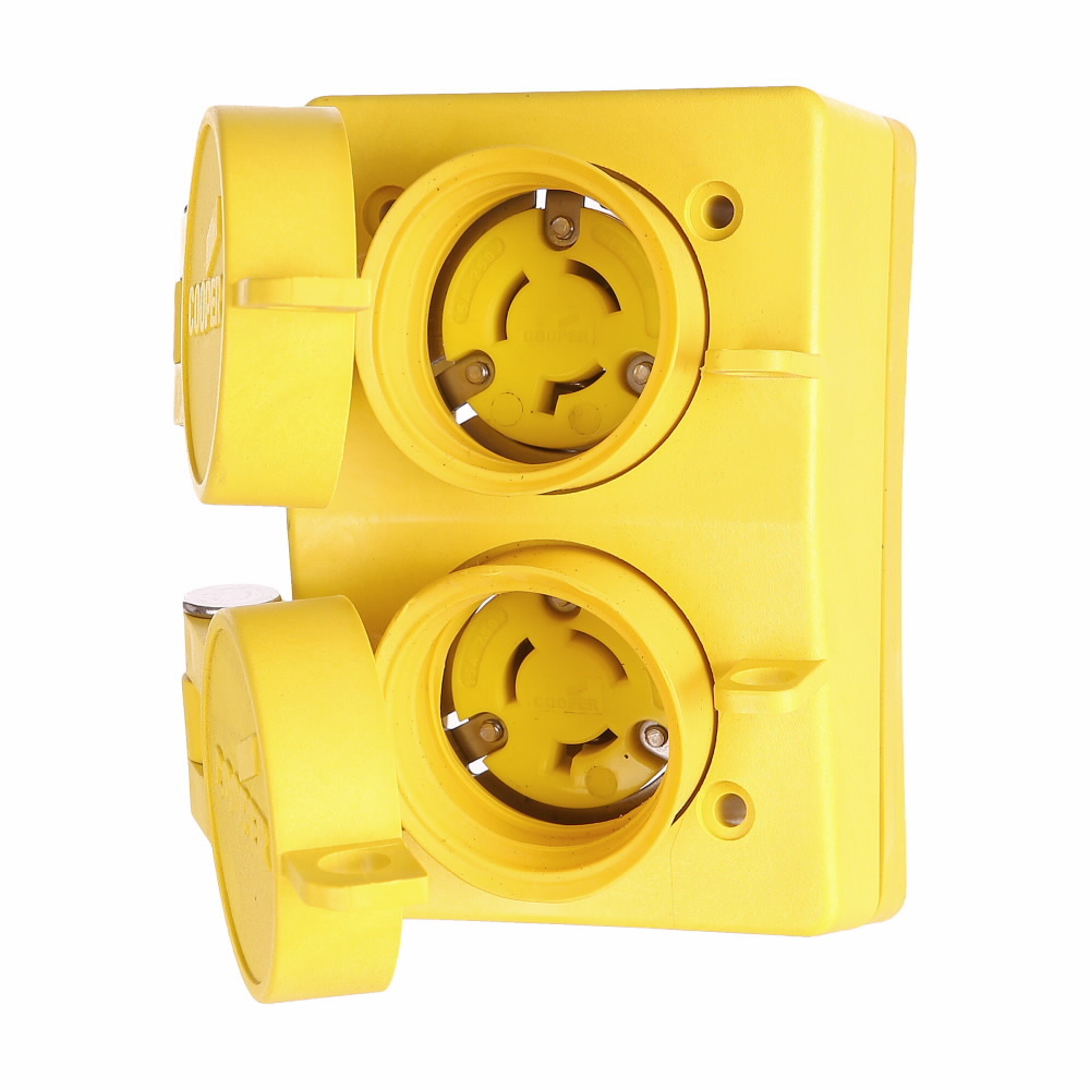 EATON Arrow Hart® Hart-Lock® 65W49DPLXBK Watertight Locking Duplex Receptacle, 250 VAC, 15 A, 2 Poles, 3 Wires, Black
