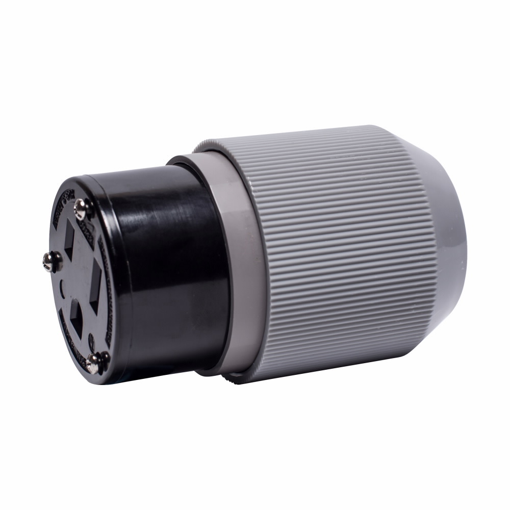 EATON Arrow Hart™ AutoGrip™ Eaton Wiring Devices 6709N Angled Safety Grip Straight Blade Connector, 250 VAC, 50 A, 2 Poles, 3 Wires, Black/Gray