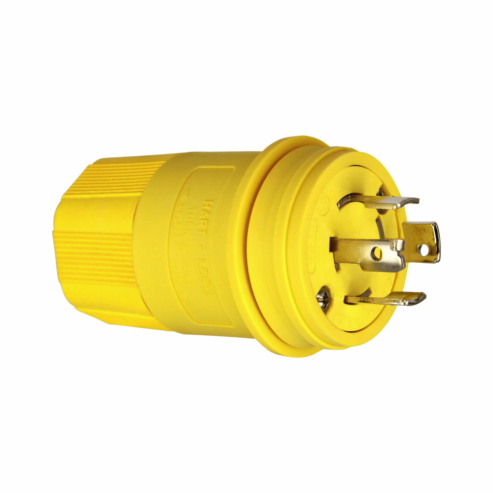 EATON Arrow Hart® 7411PWBK Watertight Locking Plug, 120/208 VAC, 20 A, 4 Poles, 4 Wires, Black