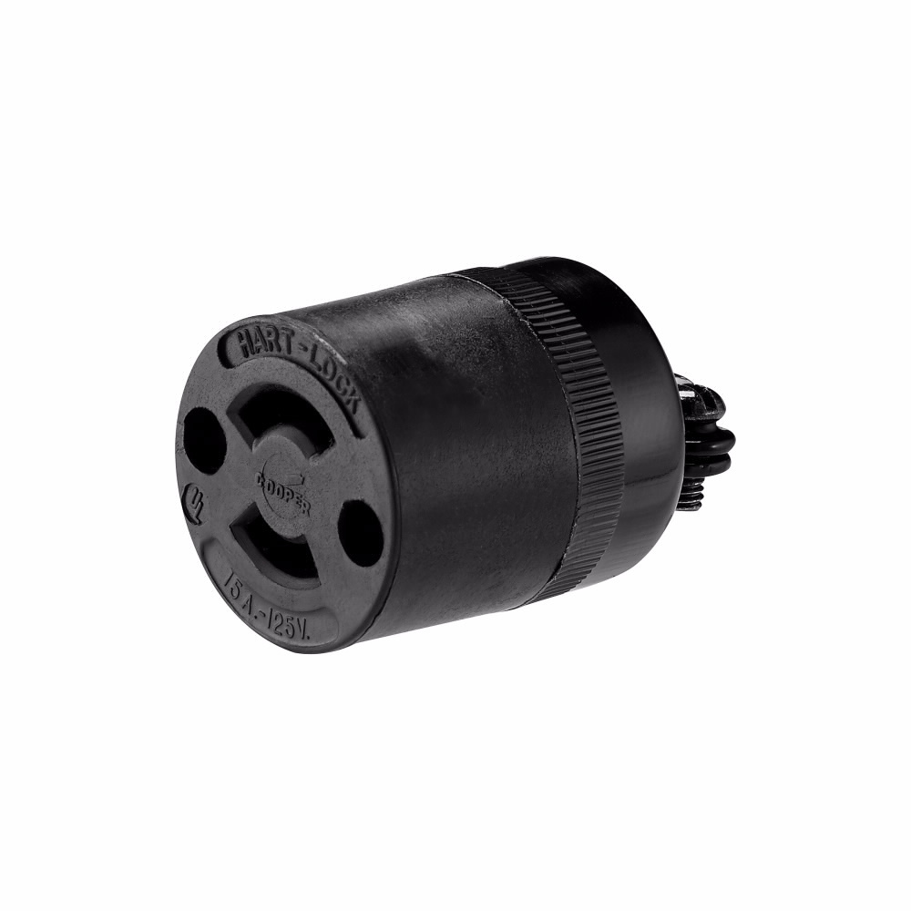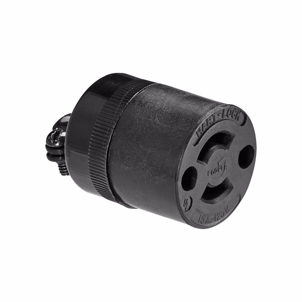EATON Arrow Hart™ Hart-Lock® Eaton Wiring Devices 7464N Midget Locking Connector, 125 VAC, 15 A, 2 Poles, 2 Wires, Black