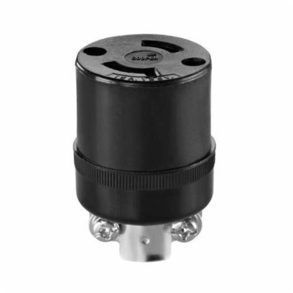 EATON Arrow Hart™ Eaton Wiring Devices 7506 Non-Grounding Straight Locking Connector, 125 VAC, 15 A, 2 Poles, 2 Wires, Black