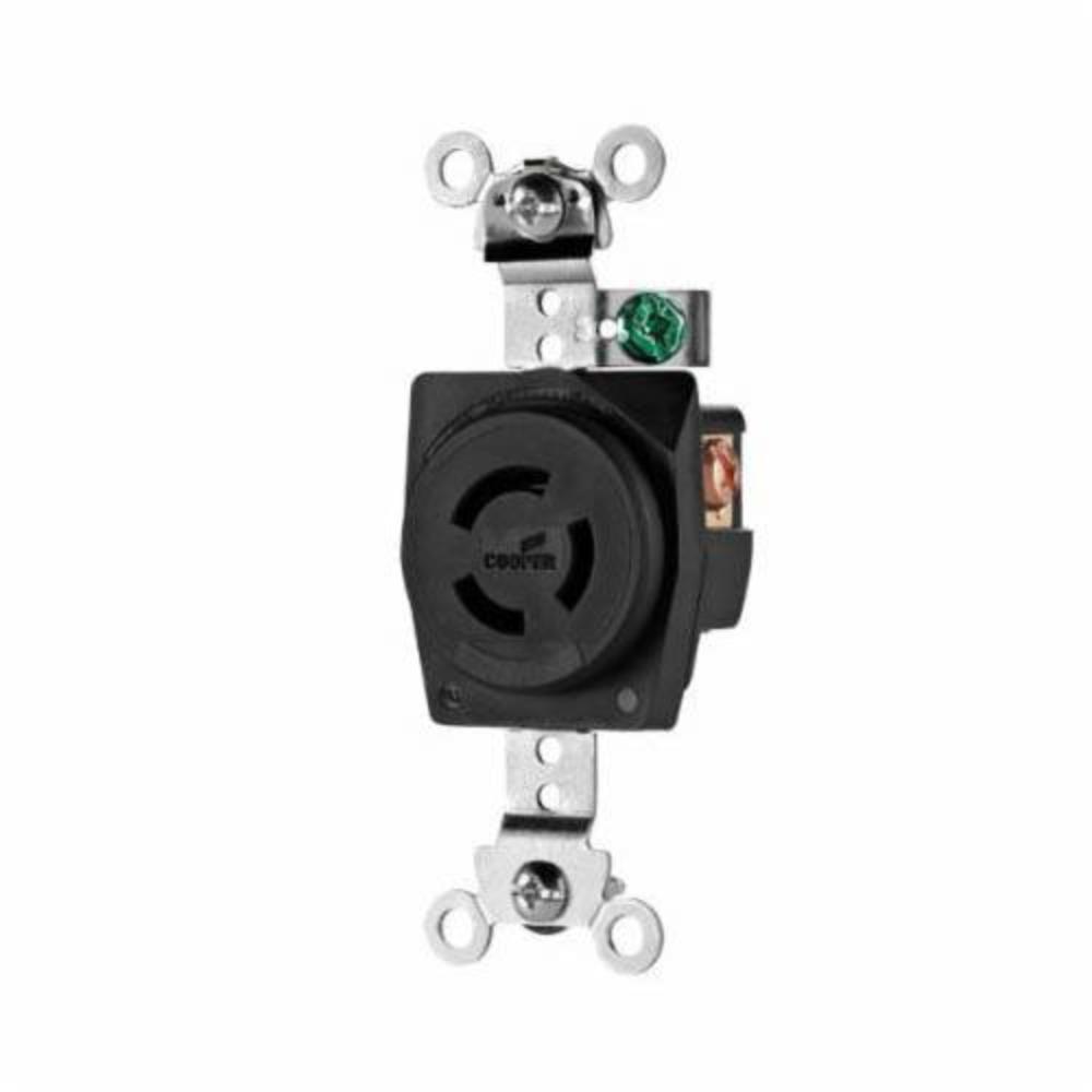 EATON Wiring Devices Arrow Hart™ Hart-Lock® 7582 Single Locking Receptacle, 125/250 VAC, 10/15 A, 3 Poles, 3 Wires, Black