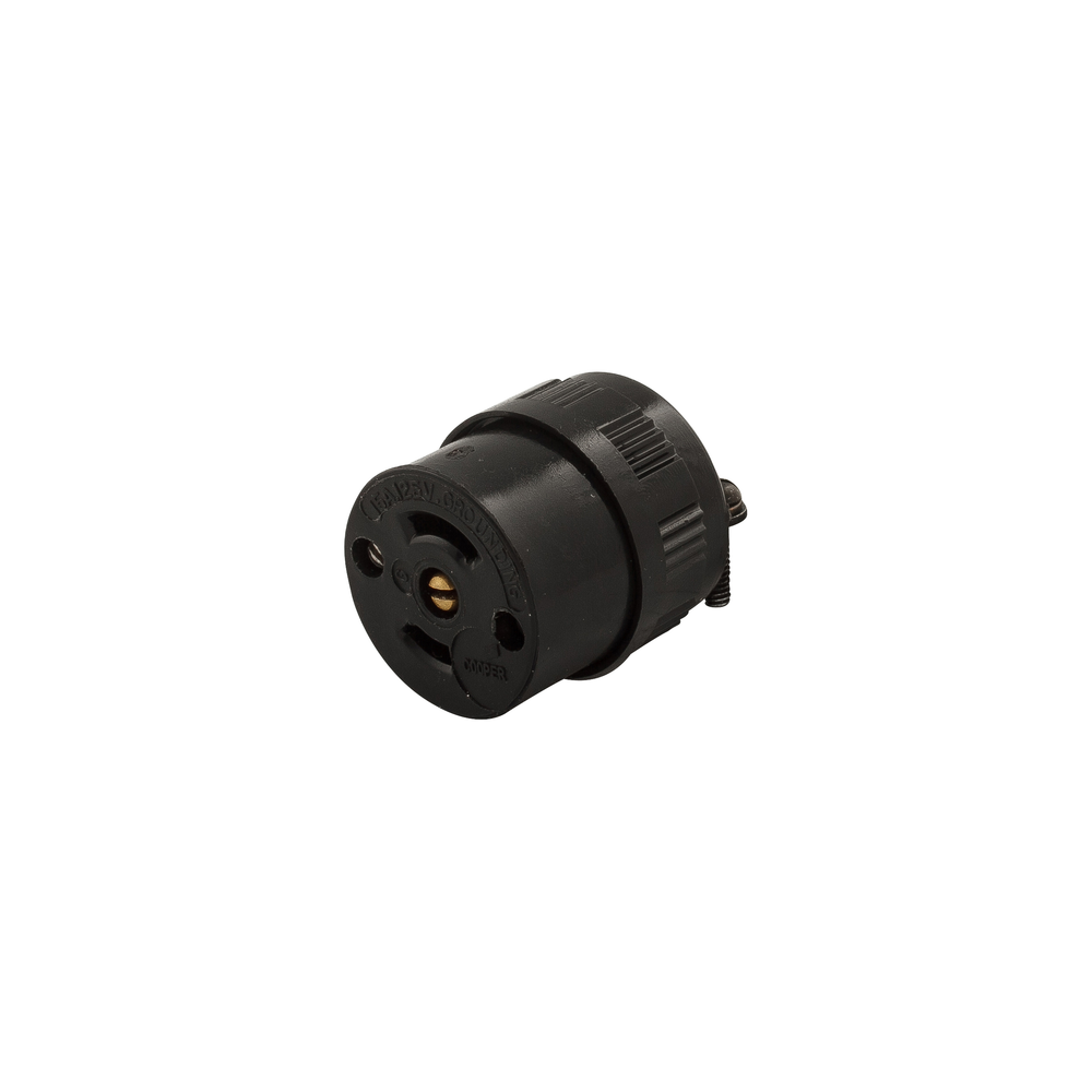 EATON 7593 Midget Locking Connector, 125 VAC, 15 A, 2 Poles, 3 Wires, Black