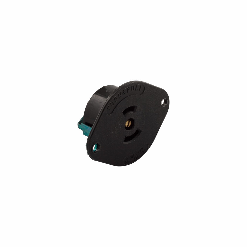 EATON Arrow Hart® AutoGrip™ Hart-Lock® 7596N Auto Grip Locking Flanged Outlet, 125 V, 15 A, 2 Poles, 3 Wires, Black
