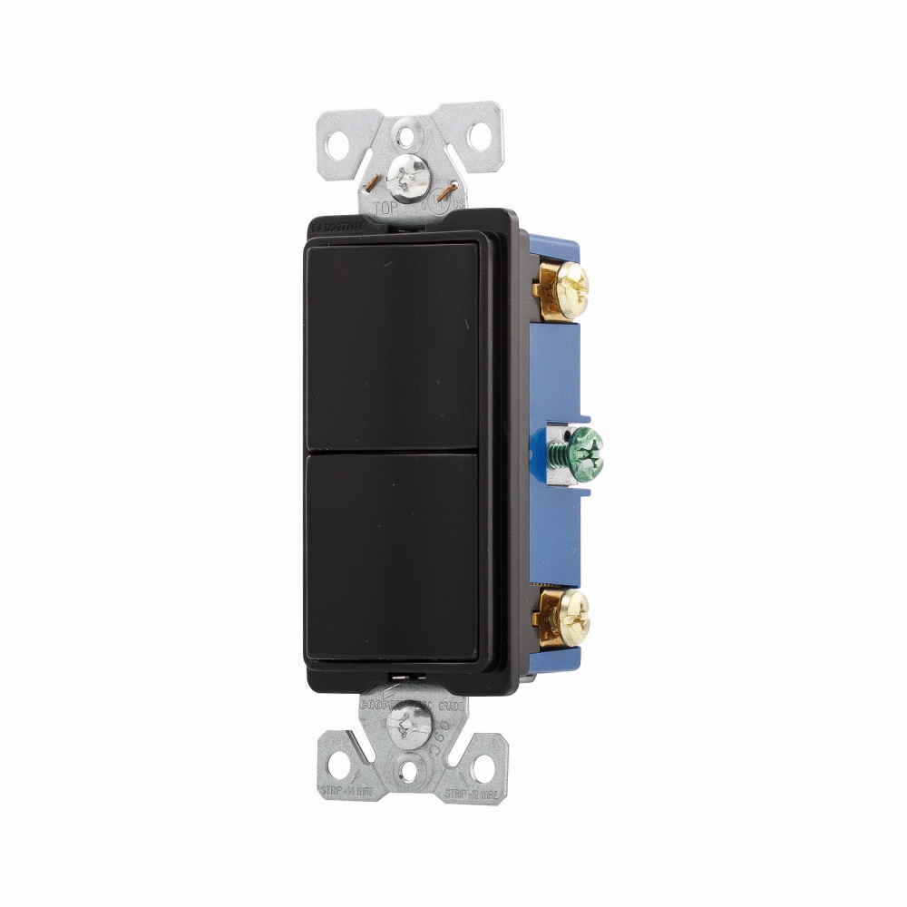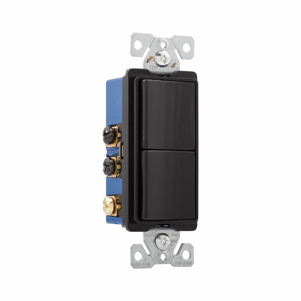 EATON Arrow Hart® 7732BK-BOX 3-Way Decorator Switch/Switch Combination Switch, 120/277 VAC, 15 A, 1 Pole