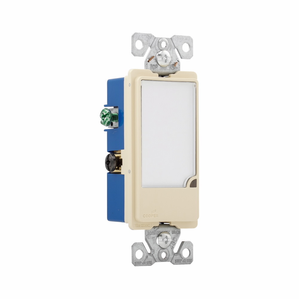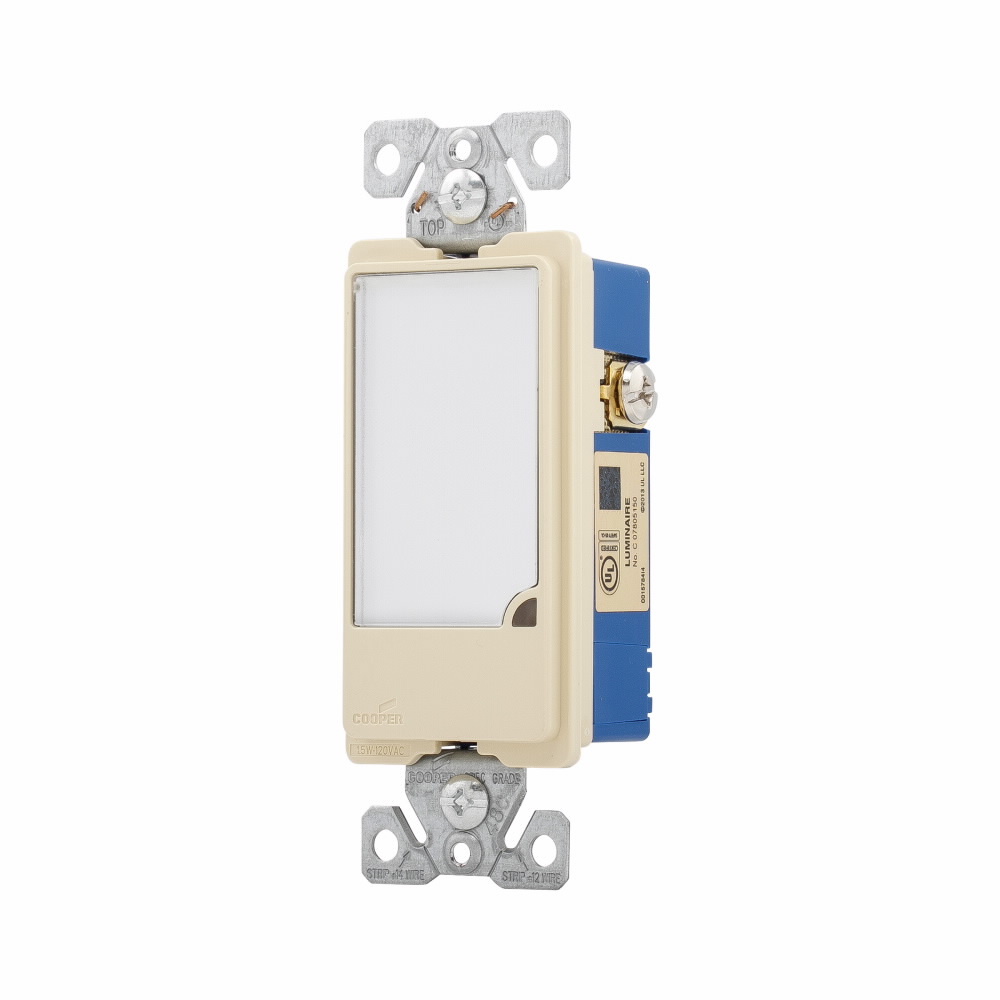 EATON 7737LA-BOX 1-Pole 3-Wire Combination Device Dimmable Full Hallway Night Light, LED Lamp, 1 W Fixture, 120/277 VAC, Light Almond Housing