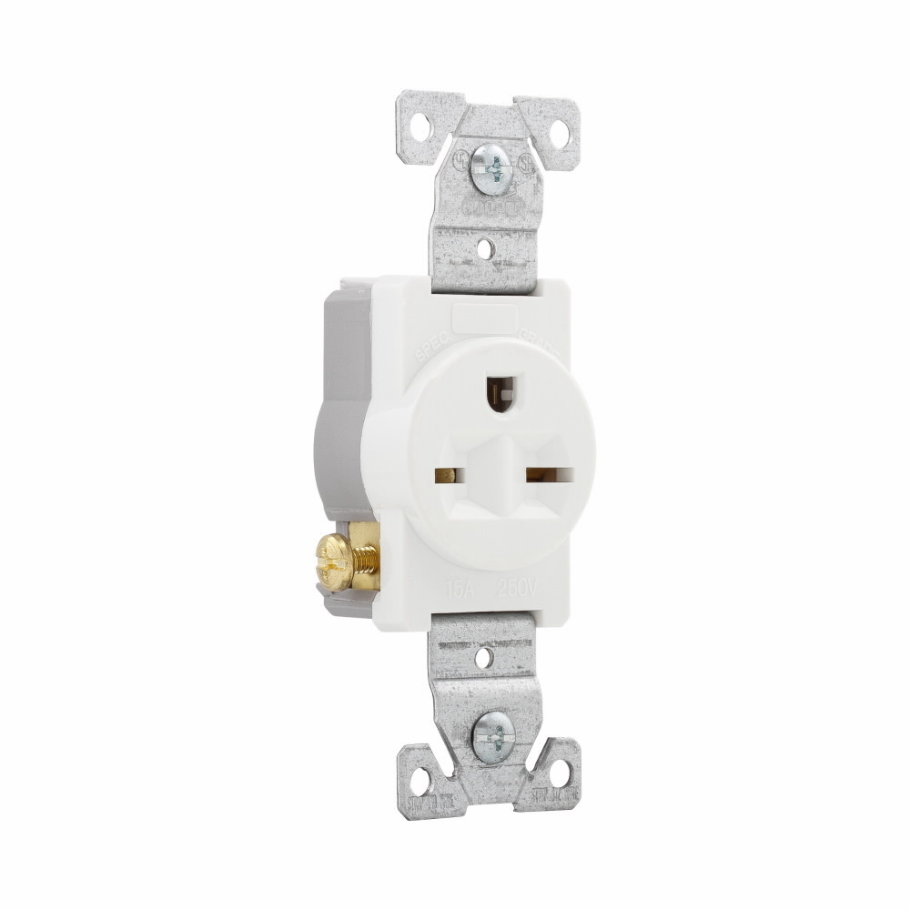 EATON Arrow Hart™ Eaton Wiring Devices 816W-BOX Single Tamper-Resistant Straight Blade Receptacle, 250 VAC, 15 A, 2 Poles, 3 Wires, White