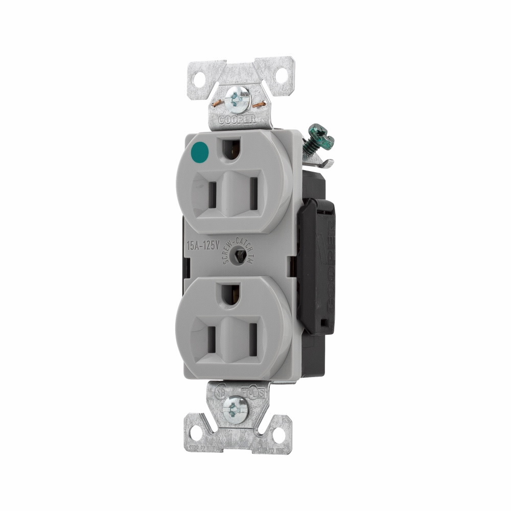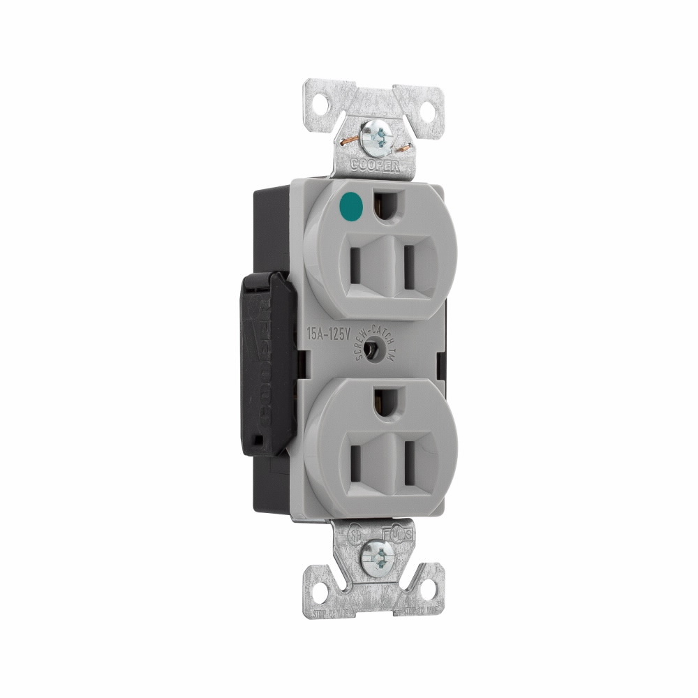 EATON Arrow Hart™ Eaton Wiring Devices 8200GY Single Straight Blade Receptacle, 125 VAC, 15 A, 2 Poles, 3 Wires, Gray