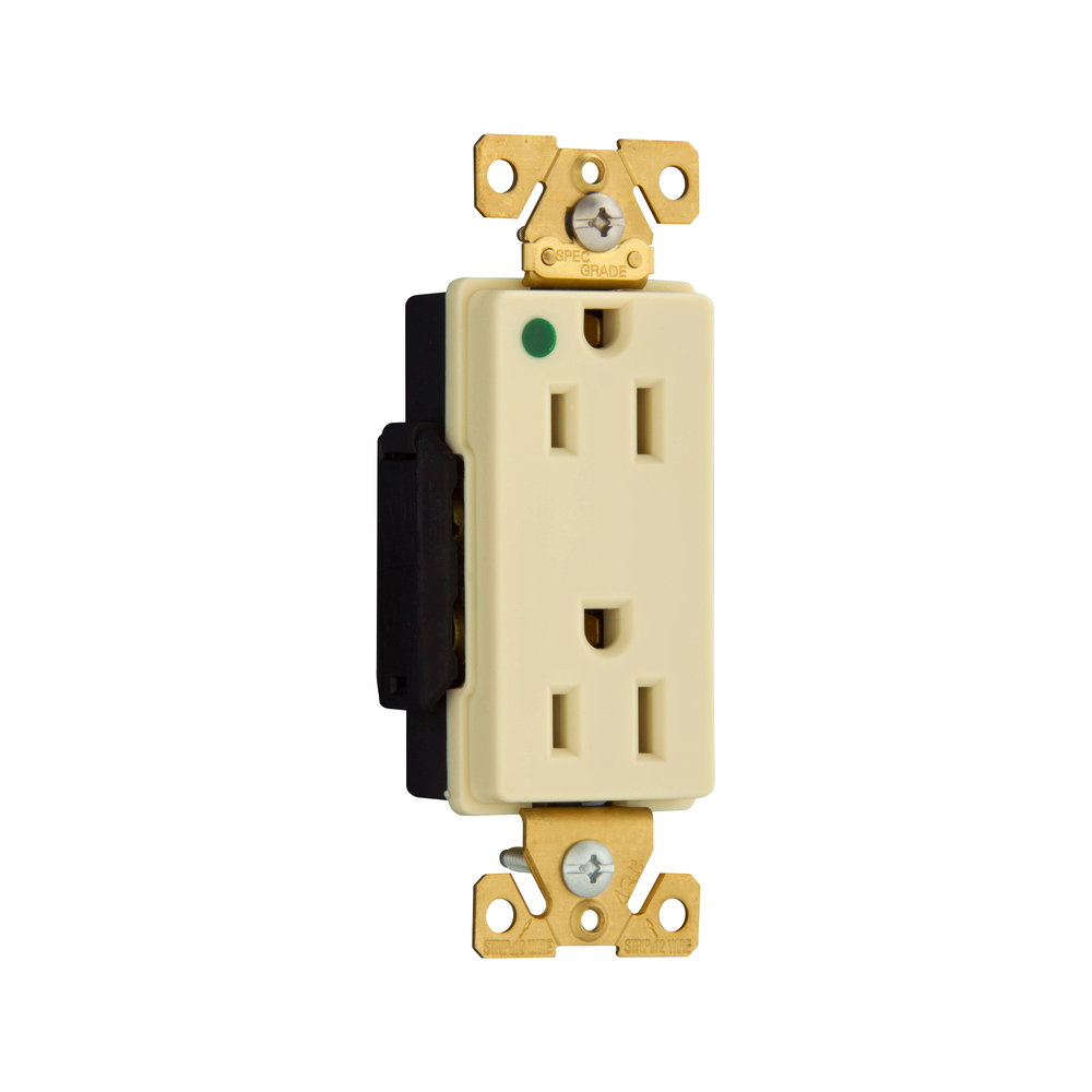 EATON Arrow Hart® 8262LTV 826 Duplex Straight Blade Receptacle, 125 V, 15 A, 2 Poles, 3 Wires, Ivory