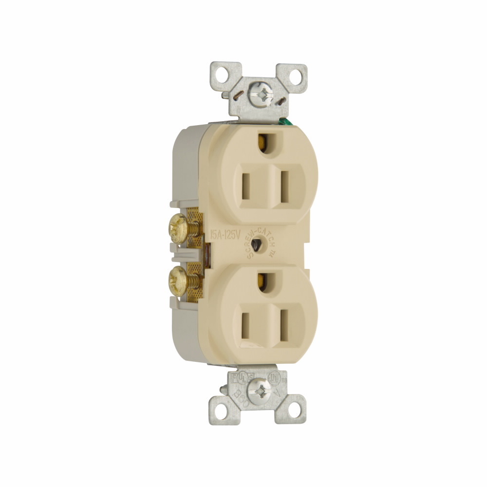 EATON Arrow Hart® 827V-BOX 827 Duplex Straight Blade Receptacle, 125 V, 15 A, 2 Poles, 3 Wires, Ivory