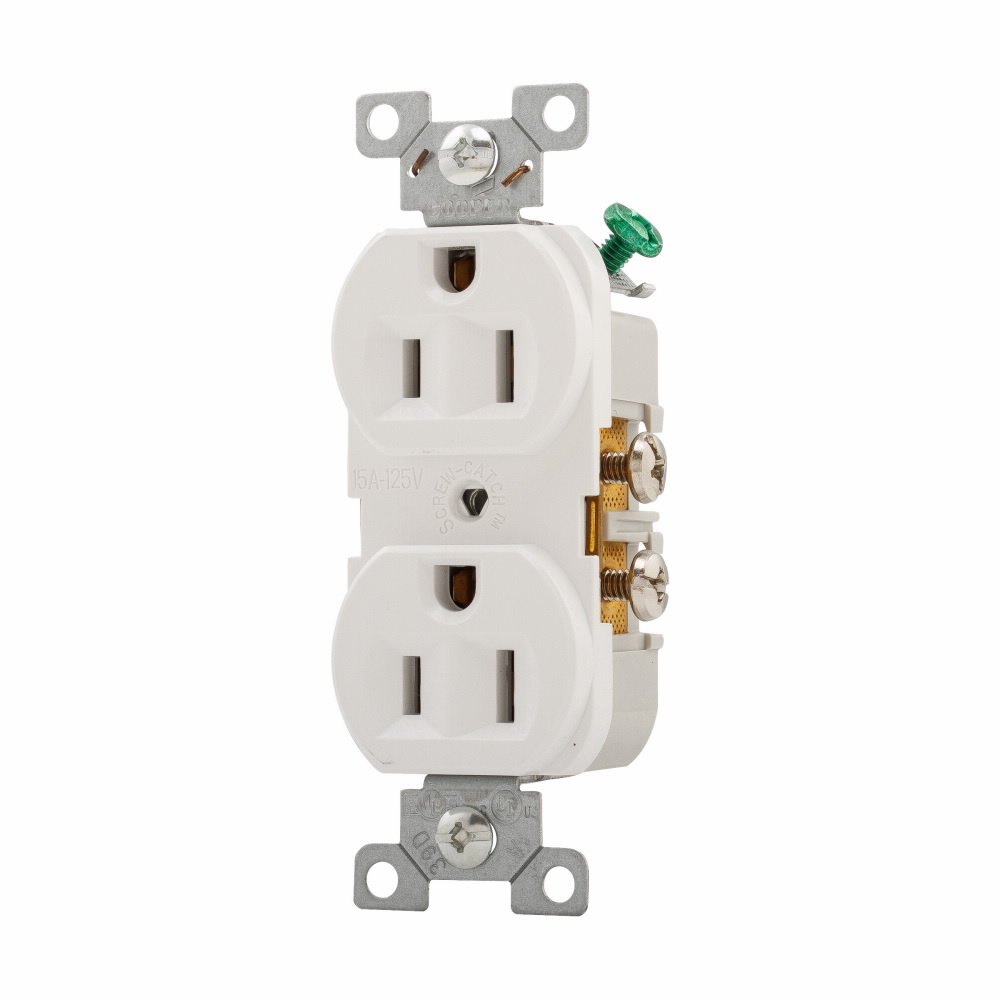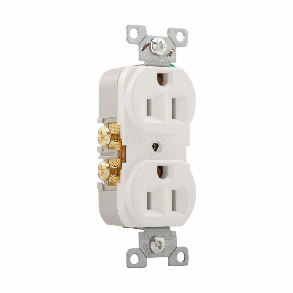 EATON Arrow Hart® 827W-BOX Duplex Pin and Sleeve Receptacle, 125 V, 15 A, 2 Poles, 3 Wires, White