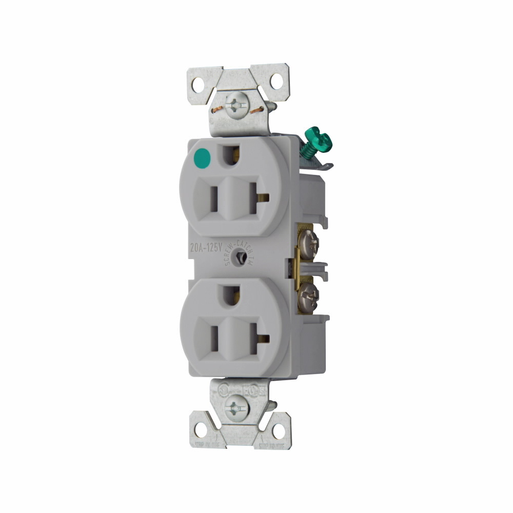 EATON Arrow Hart™ Eaton Wiring Devices 8300GY Single Straight Blade Receptacle, 125 VAC, 20 A, 2 Poles, 3 Wires, Gray