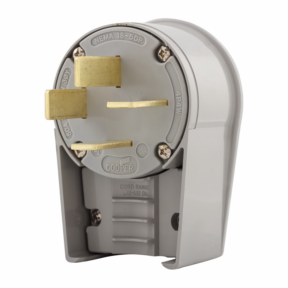 EATON 8352AN Non-Grounding Straight Blade Plug, 120/208 VAC, 50 A, 4 Poles, 4 Wires, Gray