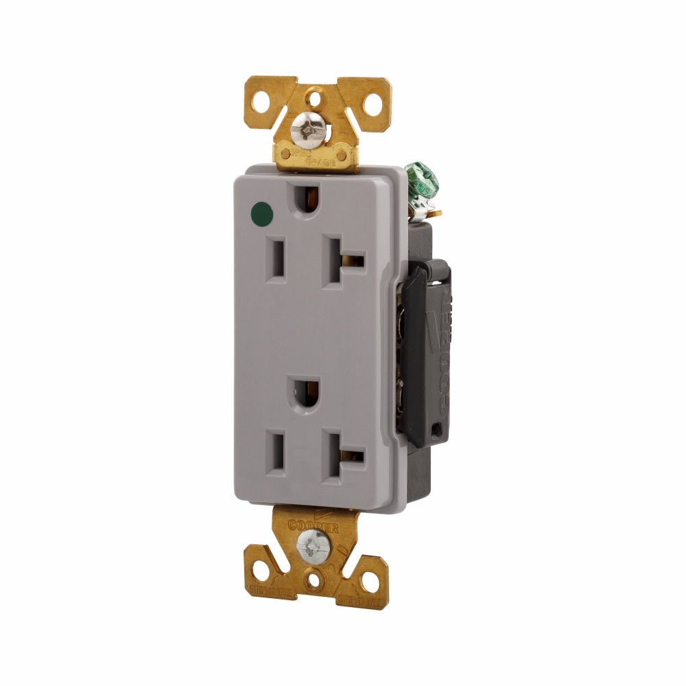 EATON Arrow Hart™ Eaton Wiring Devices 8362GY Decorator Duplex Premium Straight Blade Receptacle, 125 VAC, 20 A, 2 Poles, 3 Wires, Gray