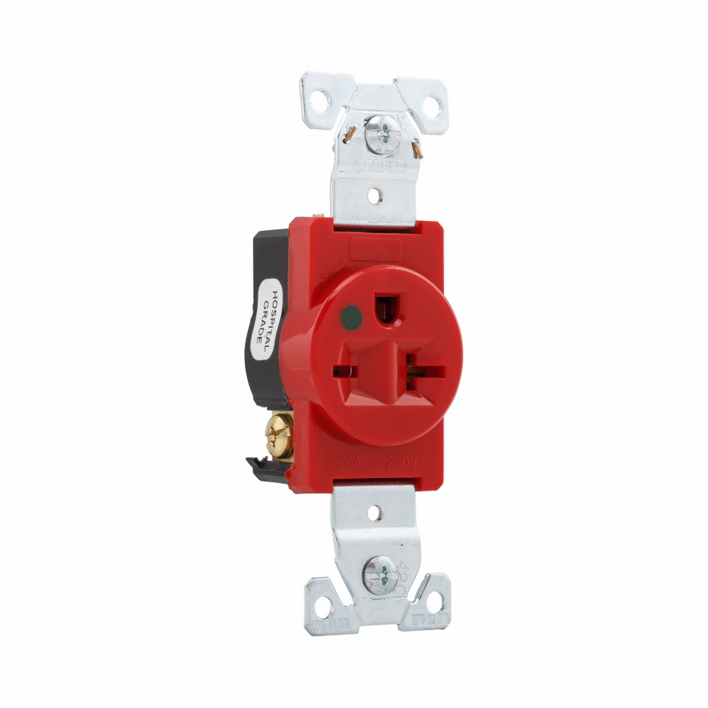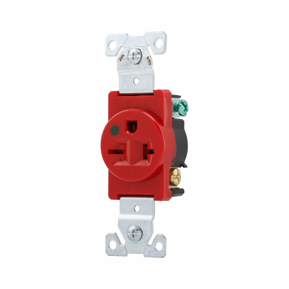 EATON Arrow Hart™ Eaton Wiring Devices 8410RD Premium Single Straight Blade Receptacle, 250 VAC, 20 A, 2 Poles, 3 Wires, Red