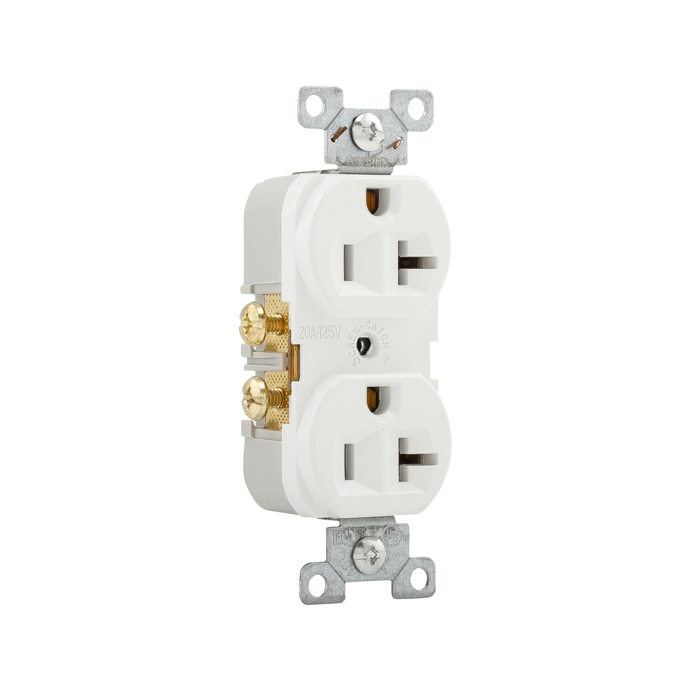 EATON 877W-BOX Duplex Non-Grounding Premium Straight Blade Receptacle, 125 VAC, 20 A, 2 Poles, 3 Wires, White