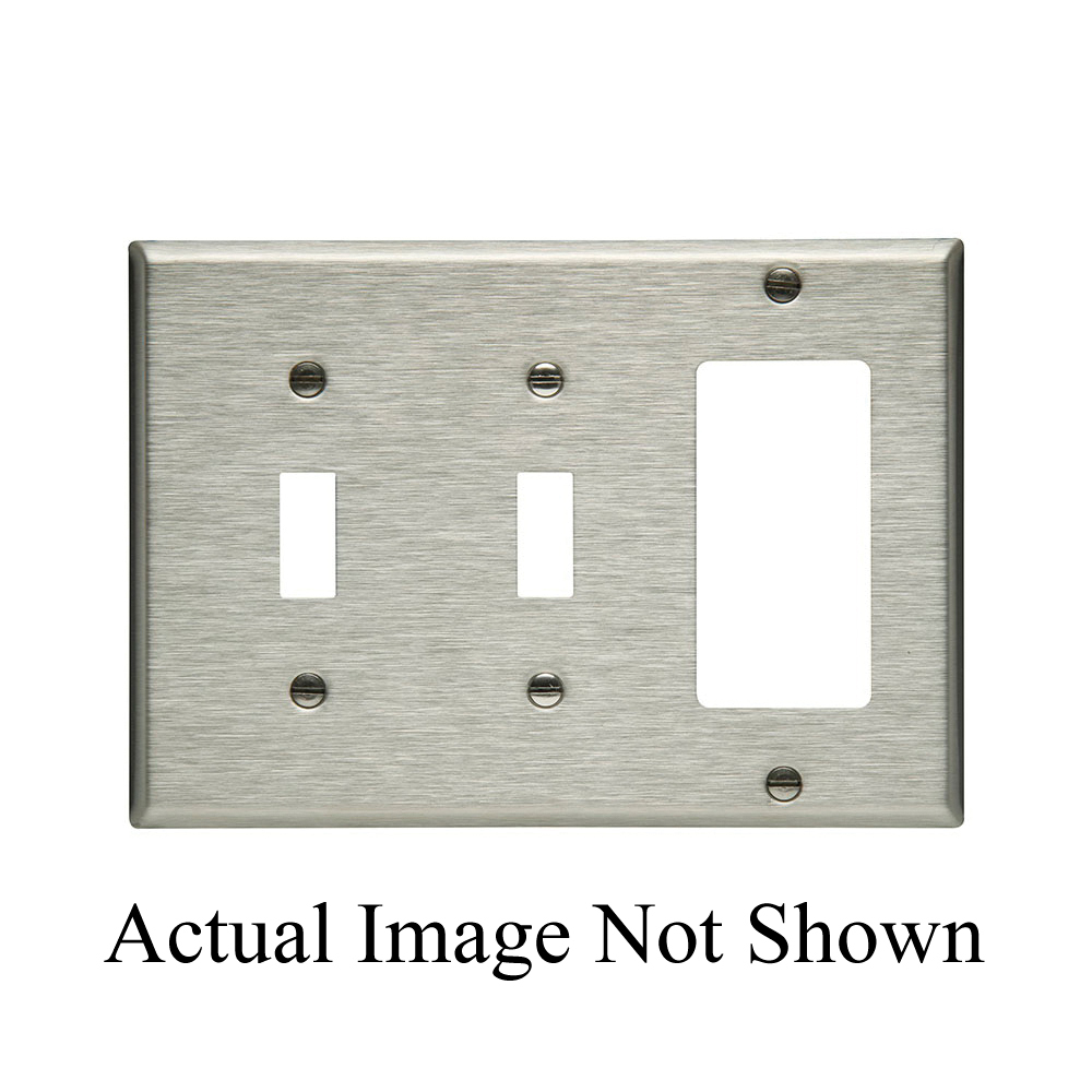 EATON Arrow Hart™ Eaton Wiring Devices 93443-BOX 93000 Standard Combination Wallplate, 2 Gangs, 4.5 in H x 4.56 in W, 302/304 Stainless Steel