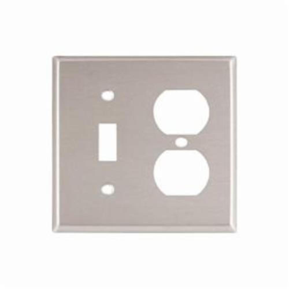 EATON Arrow Hart™ Eaton Wiring Devices 93512-BOX 93000 Standard Combination Wallplate, 2 Gangs, 4.5 in H x 4.56 in W, 302/304 Stainless Steel