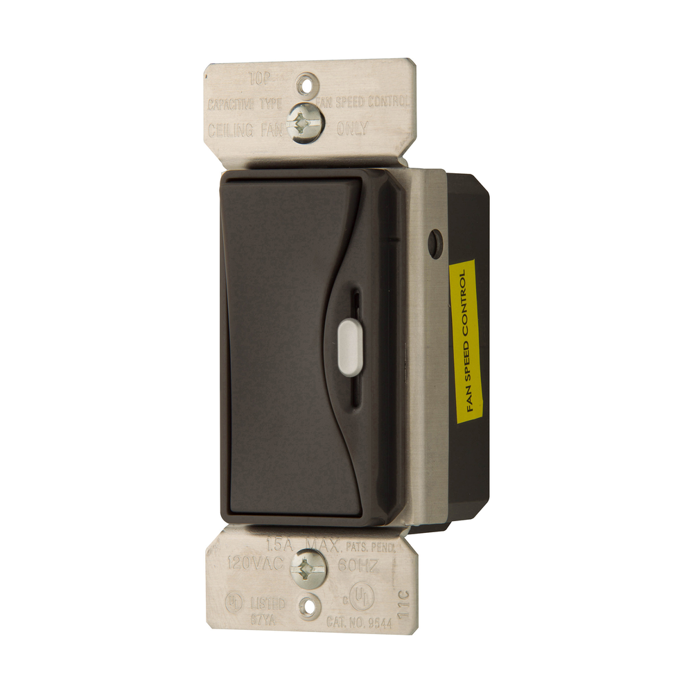EATON ASPIRE™ 9544SG 1-Pole 3-Speed Quiet Fan Control Switch, 120 VAC, 1.5 A, 3-Way/Preset/Maintained Operational Mode, Polycarbonate, Silver Granite
