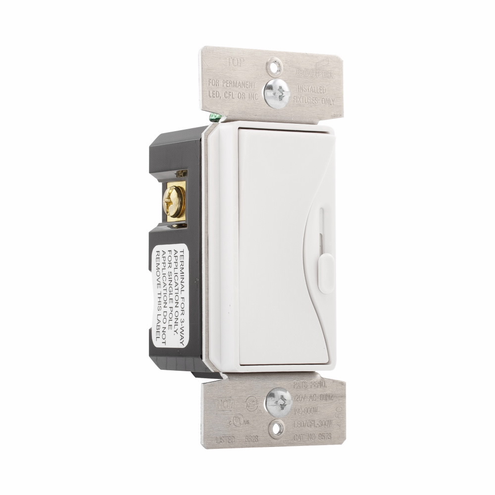 EATON Aspire® 9573AW Slide Dimmer Switch, 120 VAC, 1 Poles, 3-Way/Maintained Operation, Alpine White
