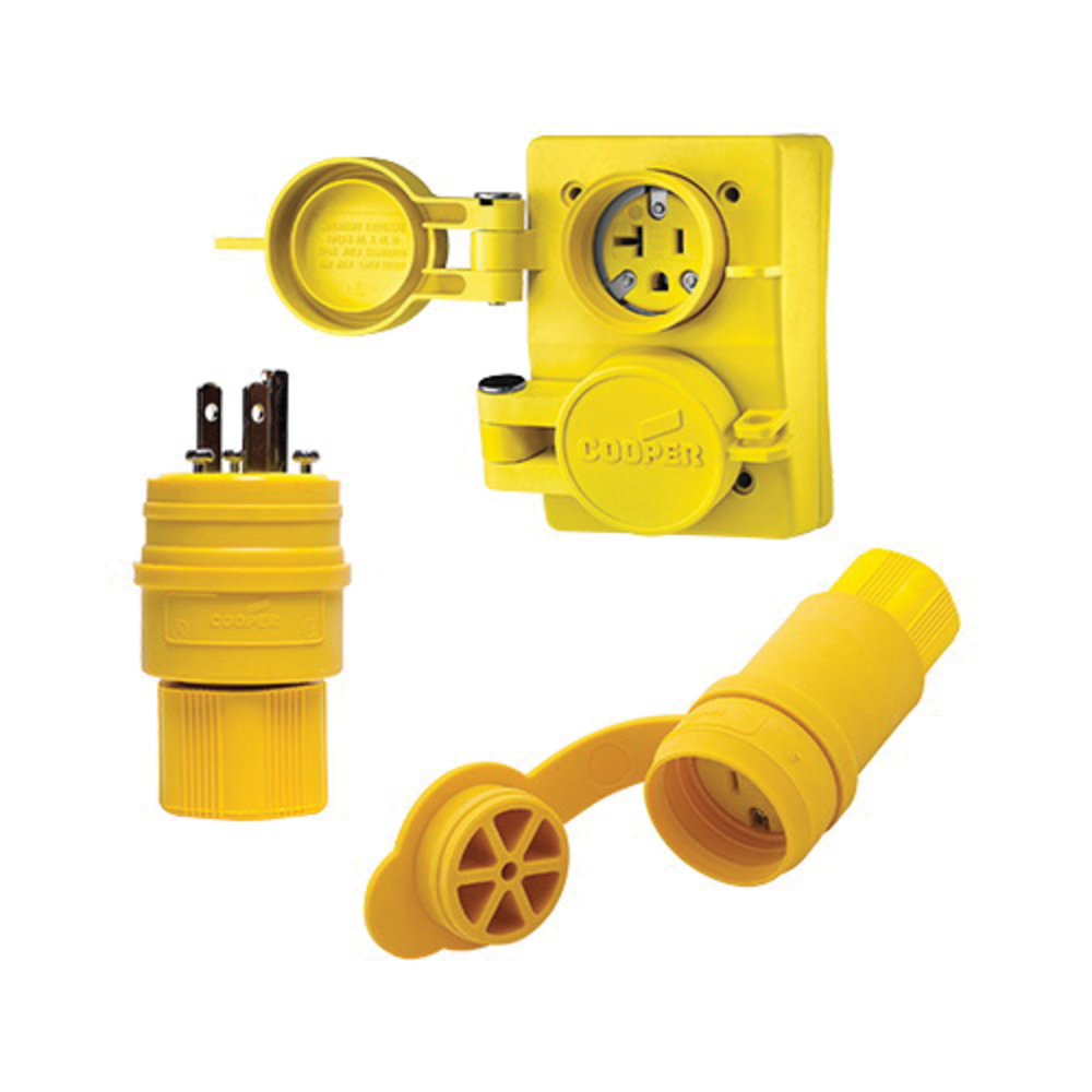 EATON Arrow Hart® 9965PWBK Watertight Locking Plug, 125/250 VAC, 20 A, 3 Poles, 3 Wires, Black