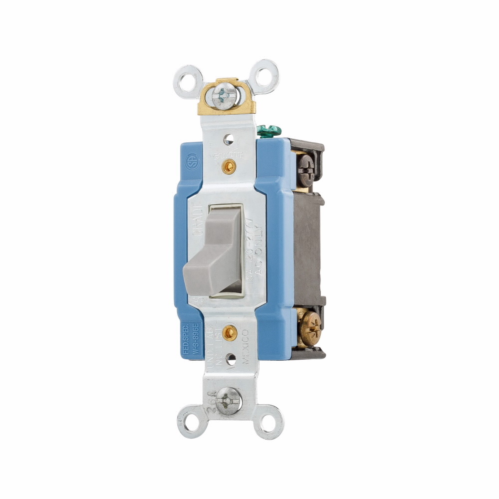 EATON Arrow Hart® AH1201GY AH1200 Automatic Grounding Premium Specification Grade Toggle Switch, 120/277 VAC, 15 A, 1/2 hp Power Rating
