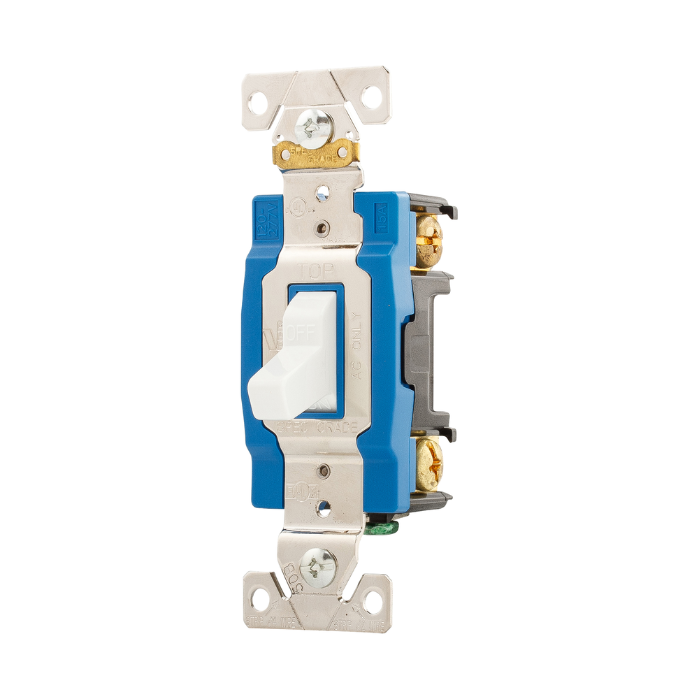 EATON Arrow Hart® AH1201W-BU AH1200 Automatic Grounding Premium Specification Grade Toggle Switch, 120/277 VAC, 15 A, 1/2 hp