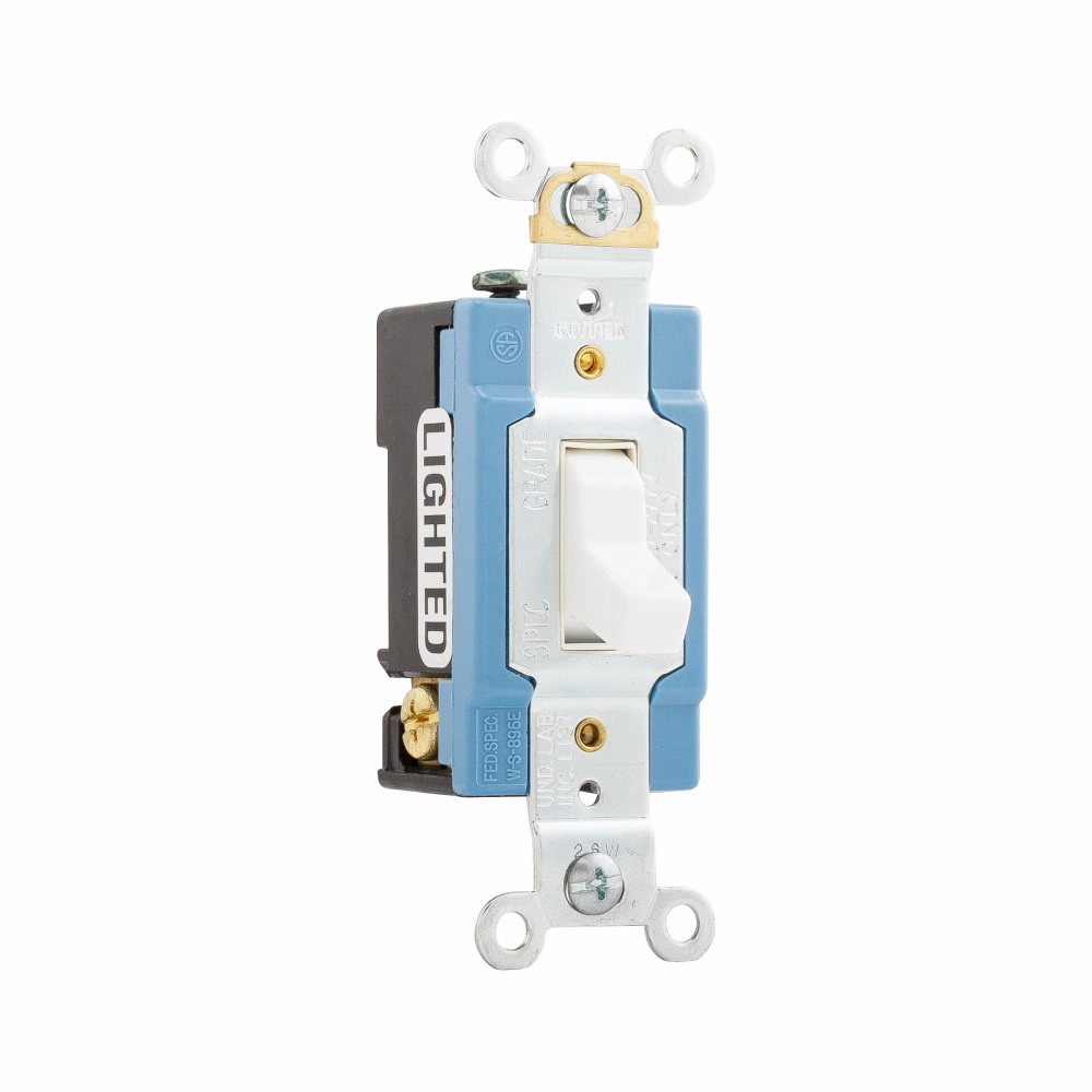 EATON Arrow Hart AH1203LTW 3-Way Auto Ground Lighted Toggle Switch, 120/277 V, 15 A, 1/2 hp, 2 hp Power Rating