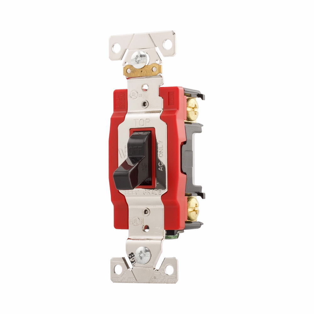EATON Arrow Hart AH1221BK Automatic Grounding Premium Specification Grade Toggle Switch, 120/277 V, 20 A, 1 hp Power Rating