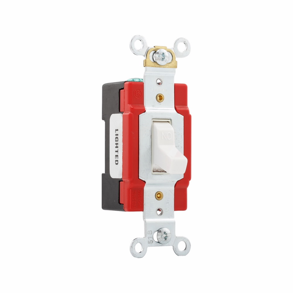 EATON Arrow Hart AH1221LTW Auto Ground Lighted Toggle Switch, 120/277 V, 20 A, 1/2 hp Power Rating