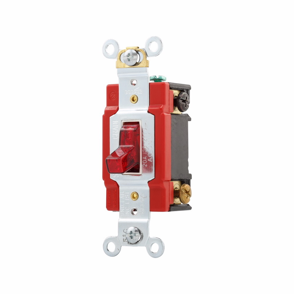 EATON Arrow Hart AH1221PL Auto Ground Toggle Switch, 120/277 V, 20 A, 1 hp, 2 hp Power Rating