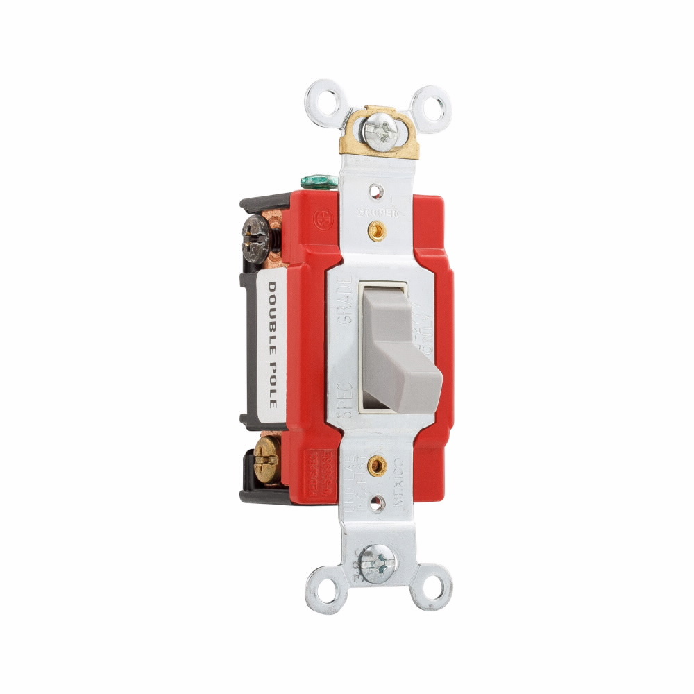 EATON Arrow Hart AH1222GY Automatic Grounding Premium Specification Grade Toggle Switch, 120/277 V, 20 A, 1 hp Power Rating