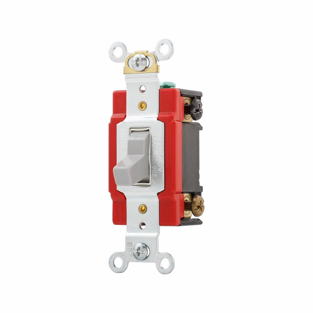 EATON Arrow Hart AH1223GY 3-Way Automatic Grounding Premium Specification Grade Toggle Switch, 120/277 V, 20 A, 1 hp Power Rating